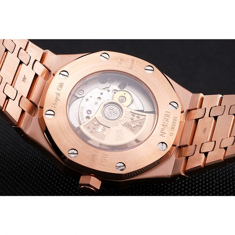 Torna: Royal Oak Offshore incisi avvitata 18k oro rosa placcata indietro con la meccanica trasparenti rivelando centro