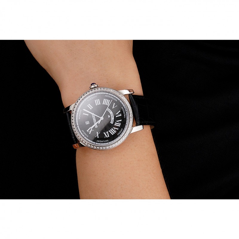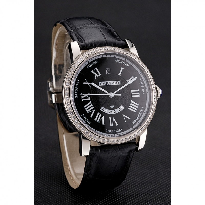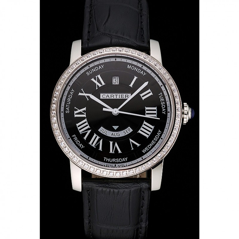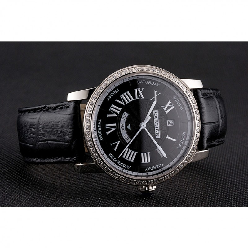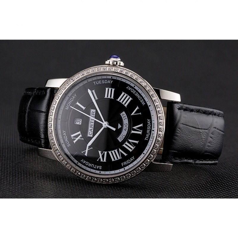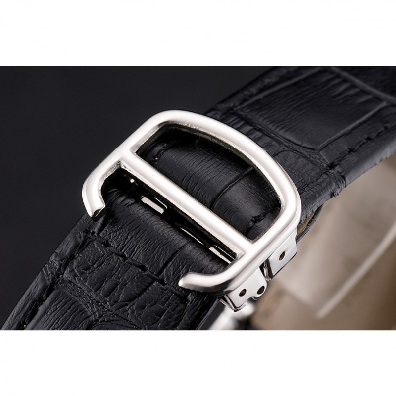 Bracciale: Cartier e il codice prodotto cinturino in pelle di coccodrillo nera di calore impresso con un acciaio inox spazzolato fold-in chiusura