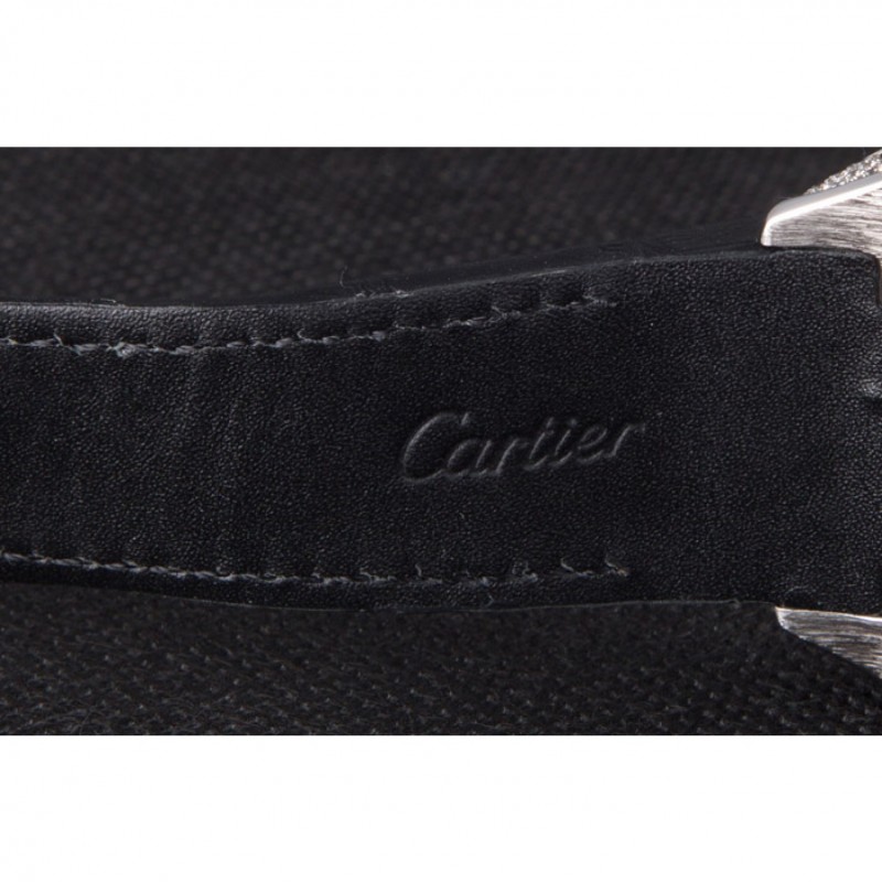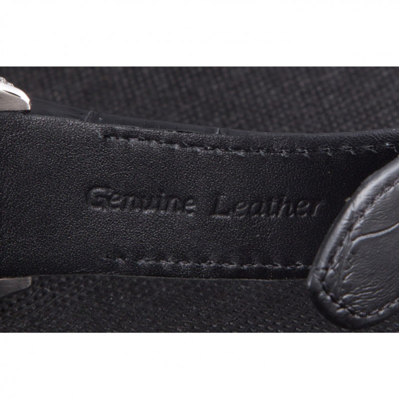 Bracciale: cinturino in pelle di coccodrillo nero calore Cartier in rilievo con chiusura rilascio spinta in acciaio inox lucidato
