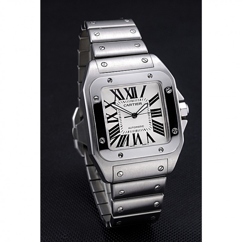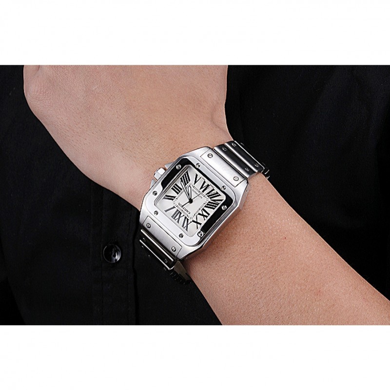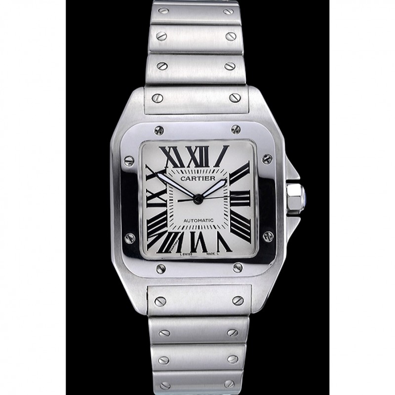 Torna: Santos100 incisione Cartier in acciaio inox spazzolato avvitato indietro