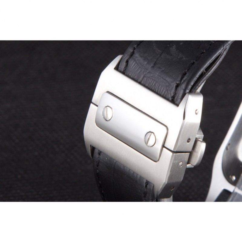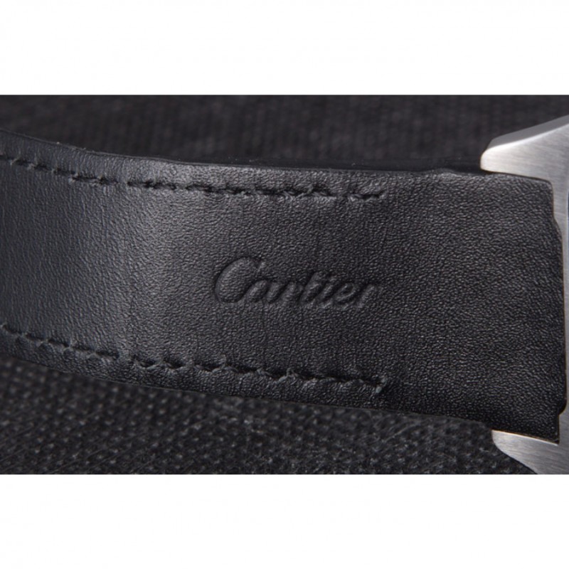 Bracciale: cinturino in pelle di coccodrillo nero calore Cartier in rilievo con chiusura rilascio spinta in acciaio inox lucidato