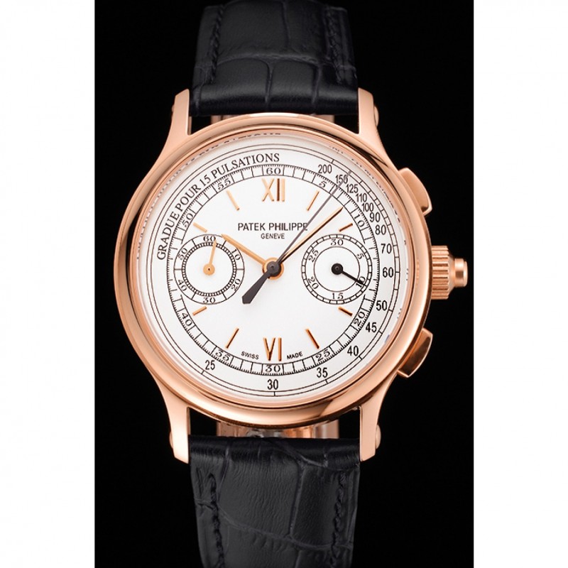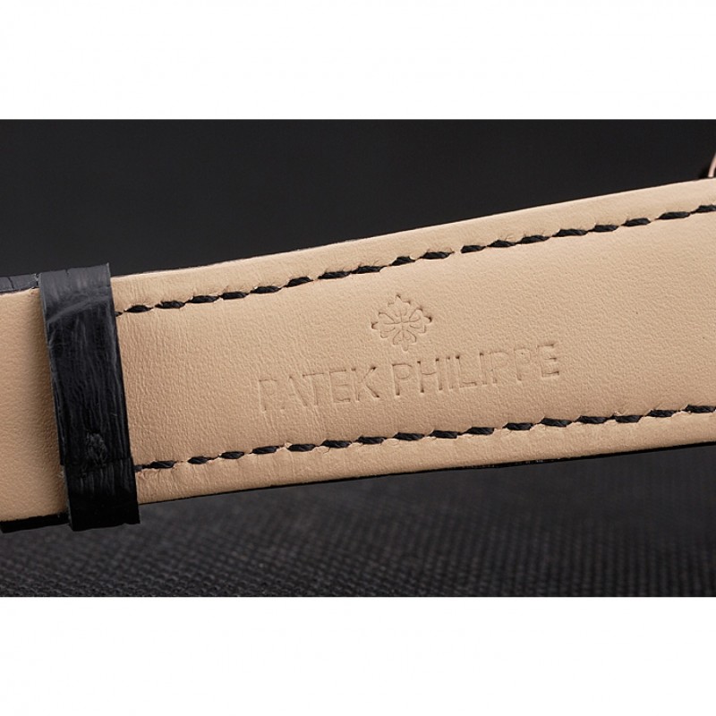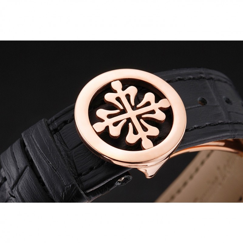 Bracciale: logo e calore in rilievo cinturino in pelle di coccodrillo nero Patek Philippe con Patek Philippe logo 18k scolpito rosa-oro placcato catenaccio del gancio-fibbia