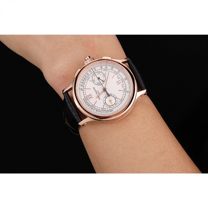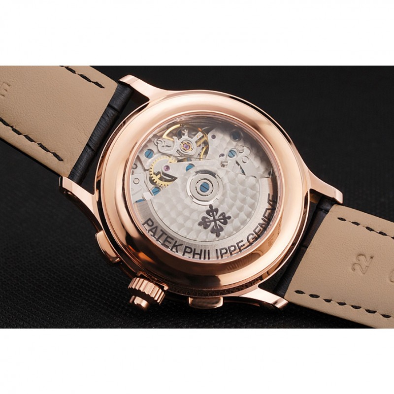 Torna: Meccaniche- trasparente rivelando indietro con un 18K rosa oro placcato snap-in cerchione e Patek Philippe iscrizione