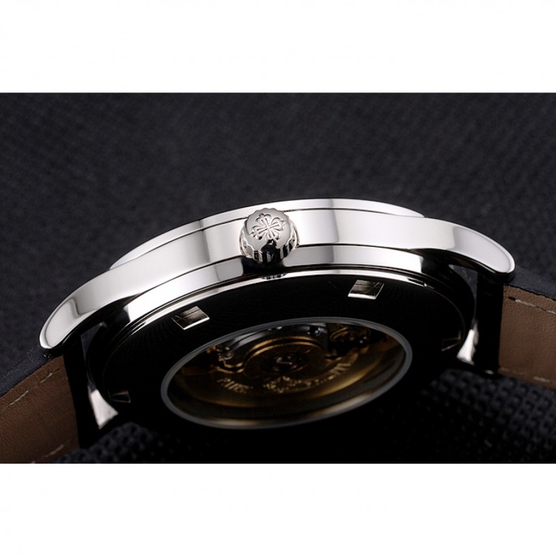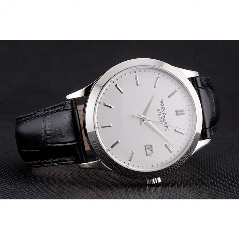 Svizzera Patek Philippe Calatrava Argento Quadrante Cassa in acciaio nero cinturino in pelle