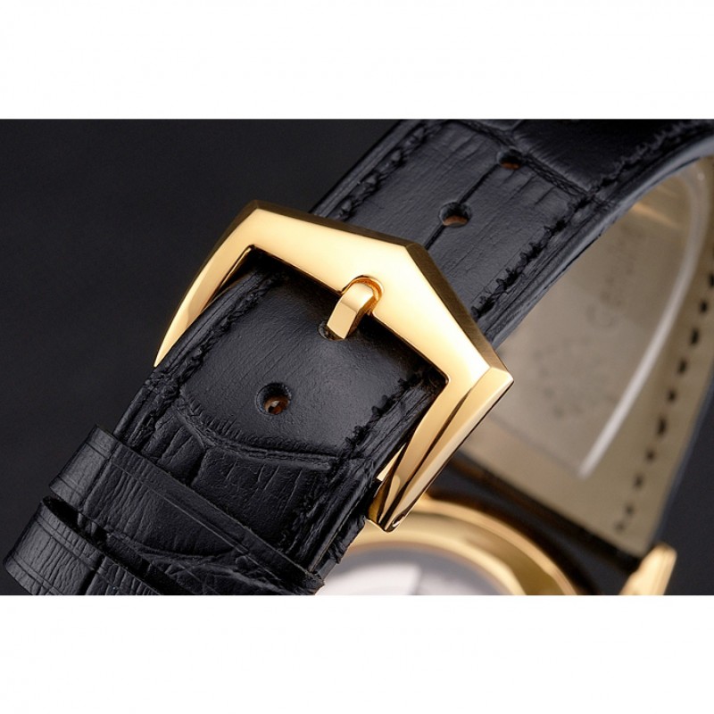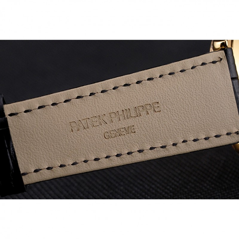 Bracciale: calore Patek Philippe Geneve impresso cinturino in pelle di coccodrillo nera con oro giallo 18k placcato catenaccio del gancio-fibbia