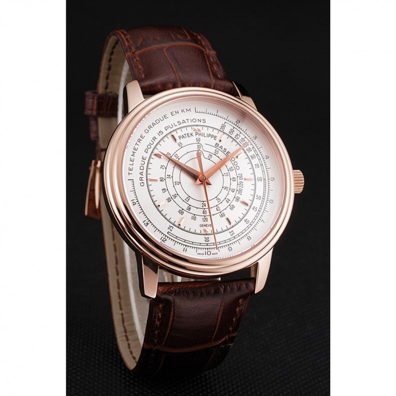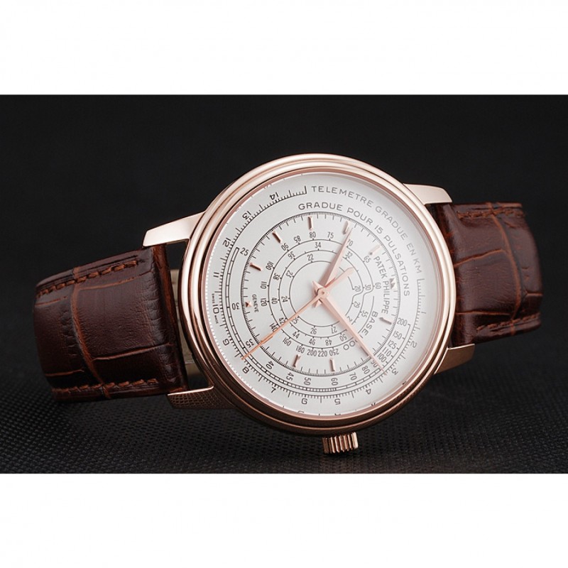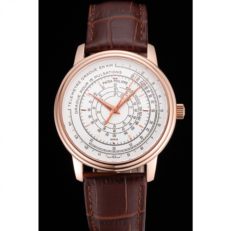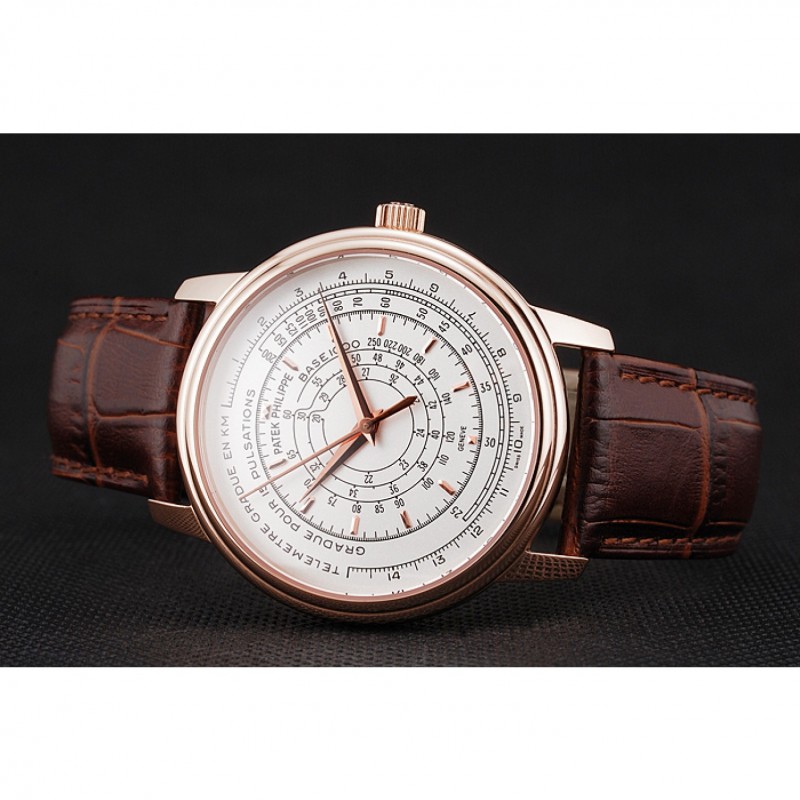 Bracciale: Patek Philippe Geneve calore impresso cinturino marrone in pelle di coccodrillo con 18k oro rosa placcato catenaccio del gancio-fibbia