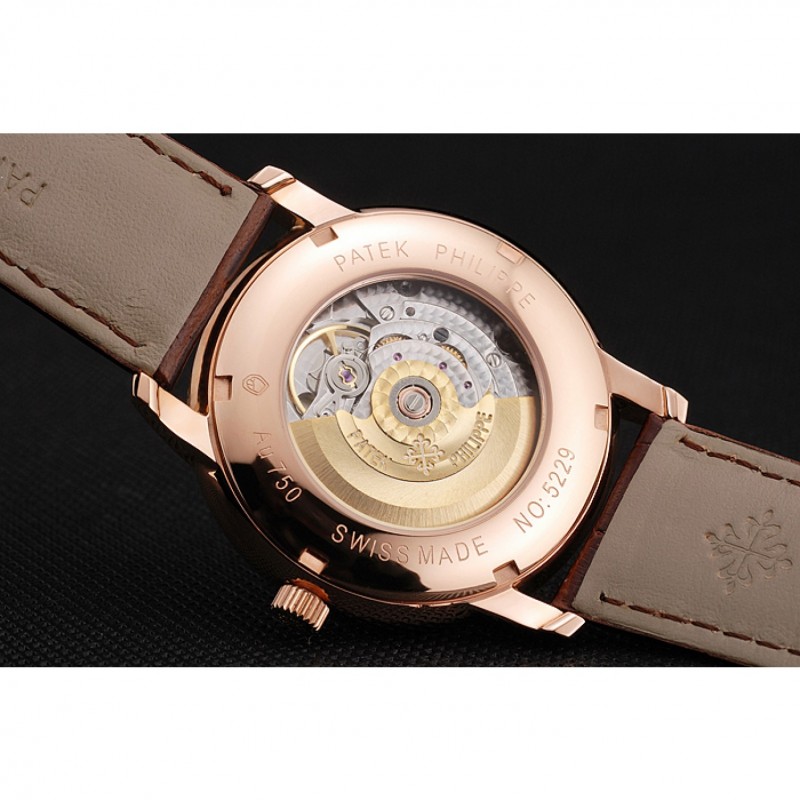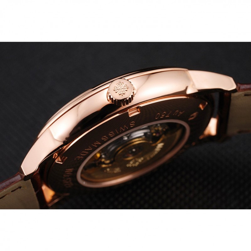 Torna: 18k Rose- oro placcato snap-retro con incisioni Patek Philippe e trasparente finestra meccanica-rivelando