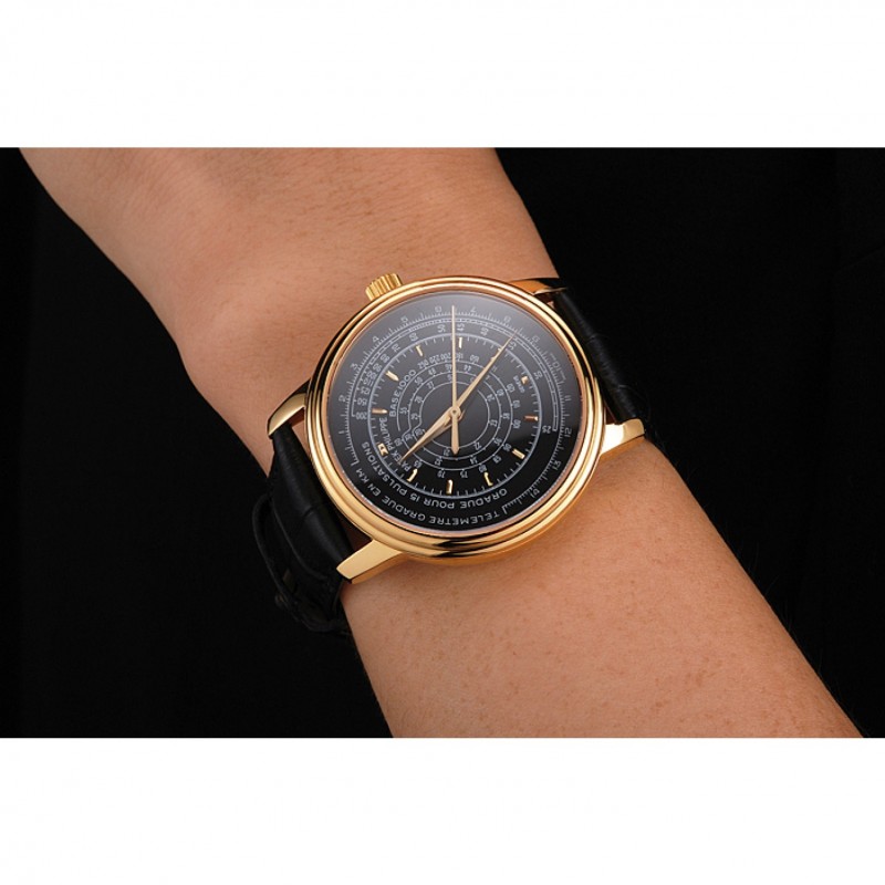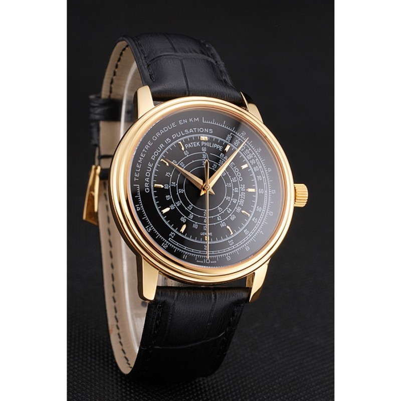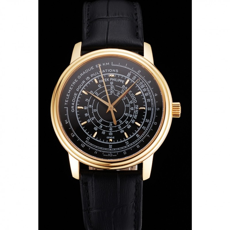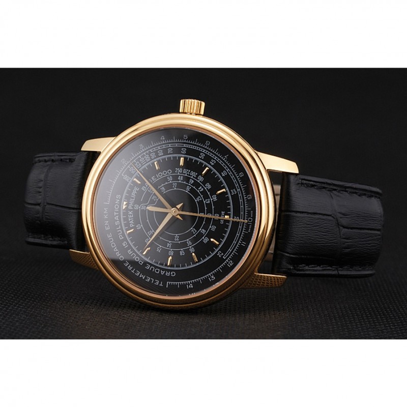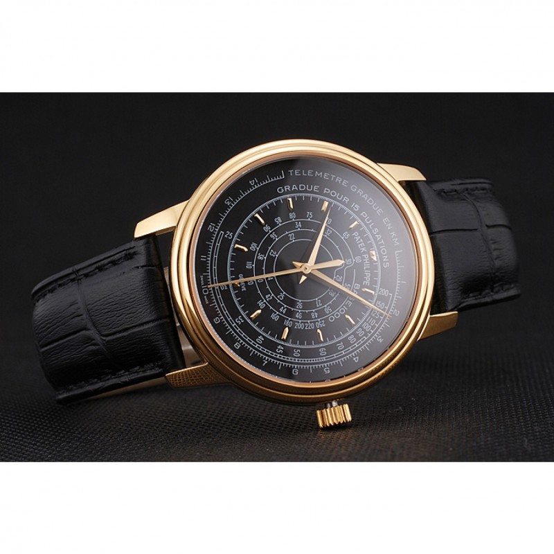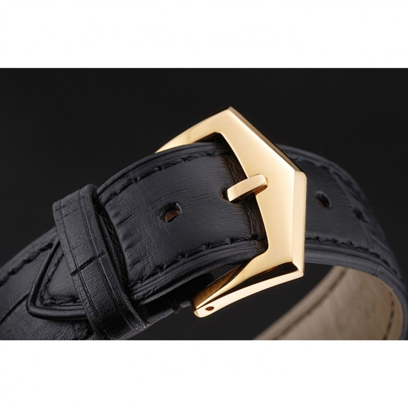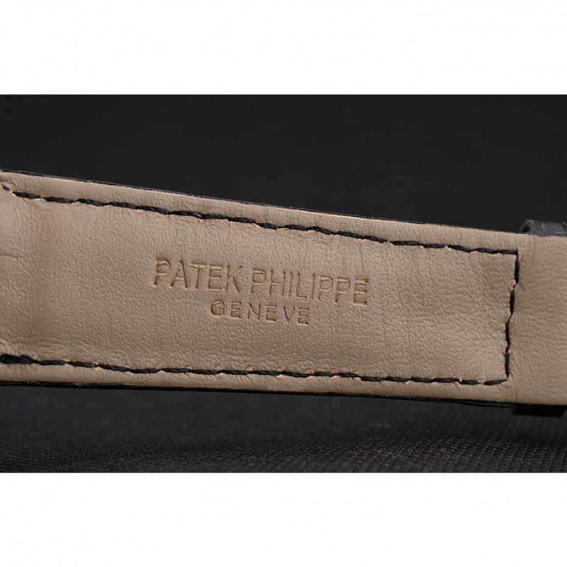 Bracciale: calore Patek Philippe Geneve impresso cinturino in pelle di coccodrillo nera con oro giallo 18k placcato catenaccio del gancio-fibbia