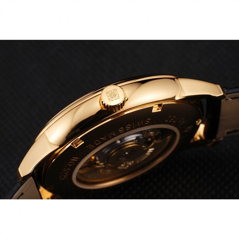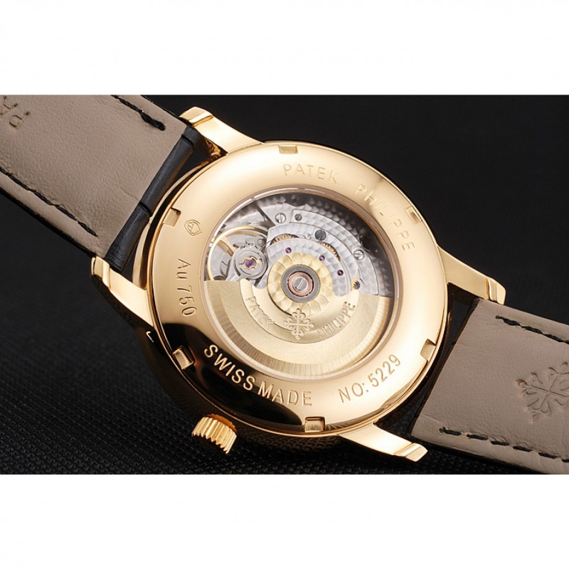 Torna: placcato oro giallo 18k snap-retro con incisioni Patek Philippe e trasparente finestra meccanica-rivelando