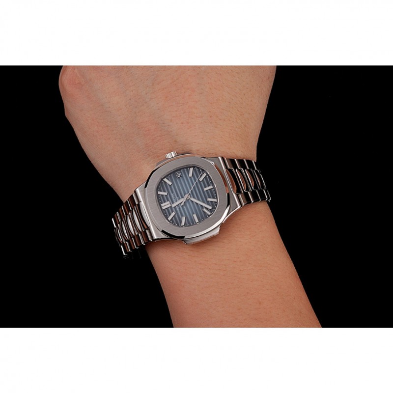 Svizzera Patek Philippe Nautilus Black-Quadrante Blu Bracciale in acciaio inossidabile 1453948