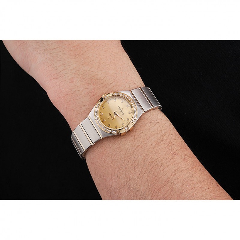Bracciale: oro giallo 18k placcato e acciaio inox satinato bracciale in oro giallo placcato Omega rilascio logo spinta chiusura nascosto