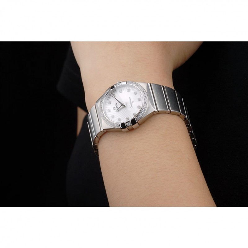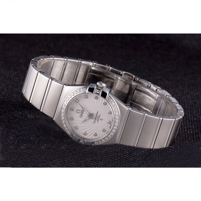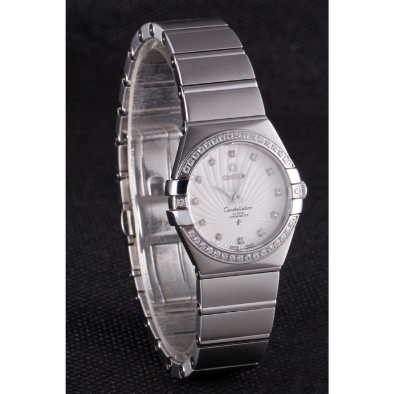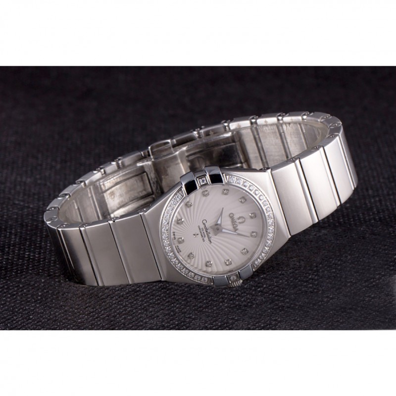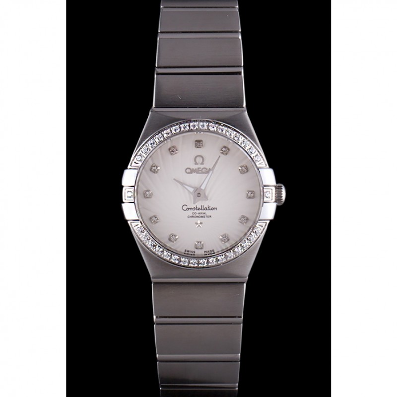 Svizzero Lady Omega Constellation cristallo incrostato Lunetta Argento Radial Quadrante 80291
