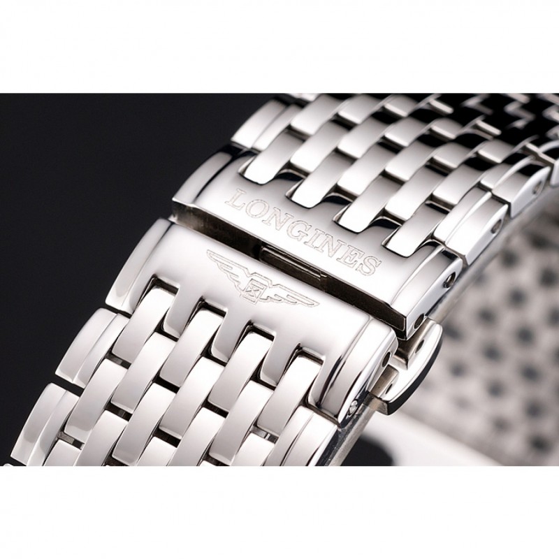 bracciale: lucido bracciale a maglie in acciaio inox con Longines e logo inciso push-rilascio chiusura nascosta