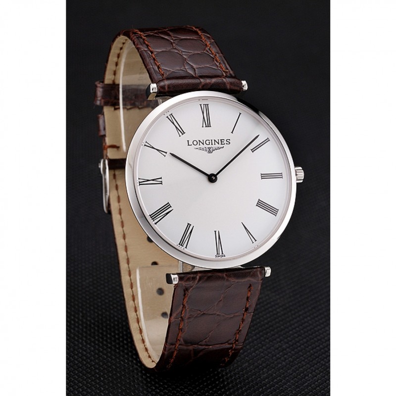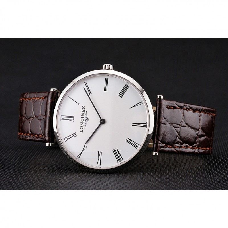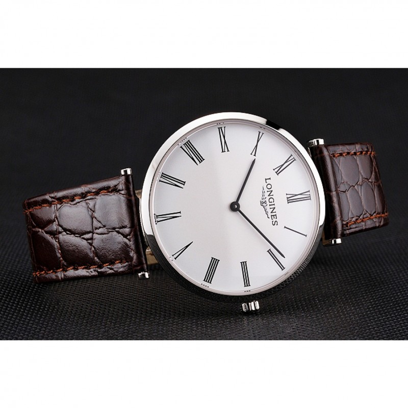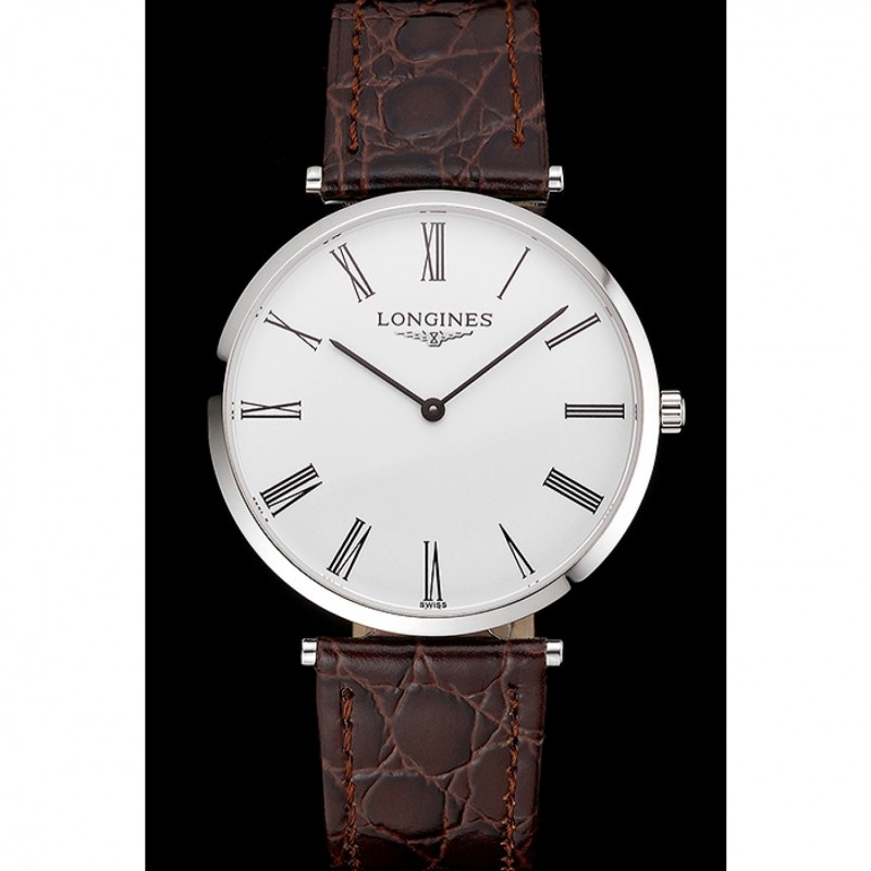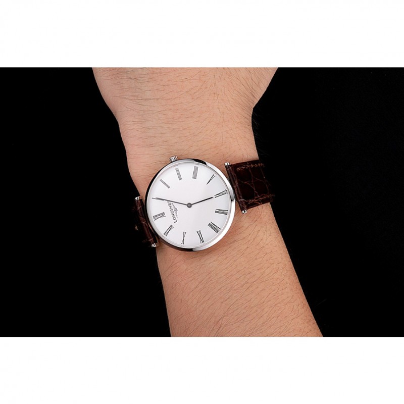Bracciale: Brown cinturino in pelle di coccodrillo con Longines logo intagliato in acciaio inox spazzolato chiusura del gancio-fibbia