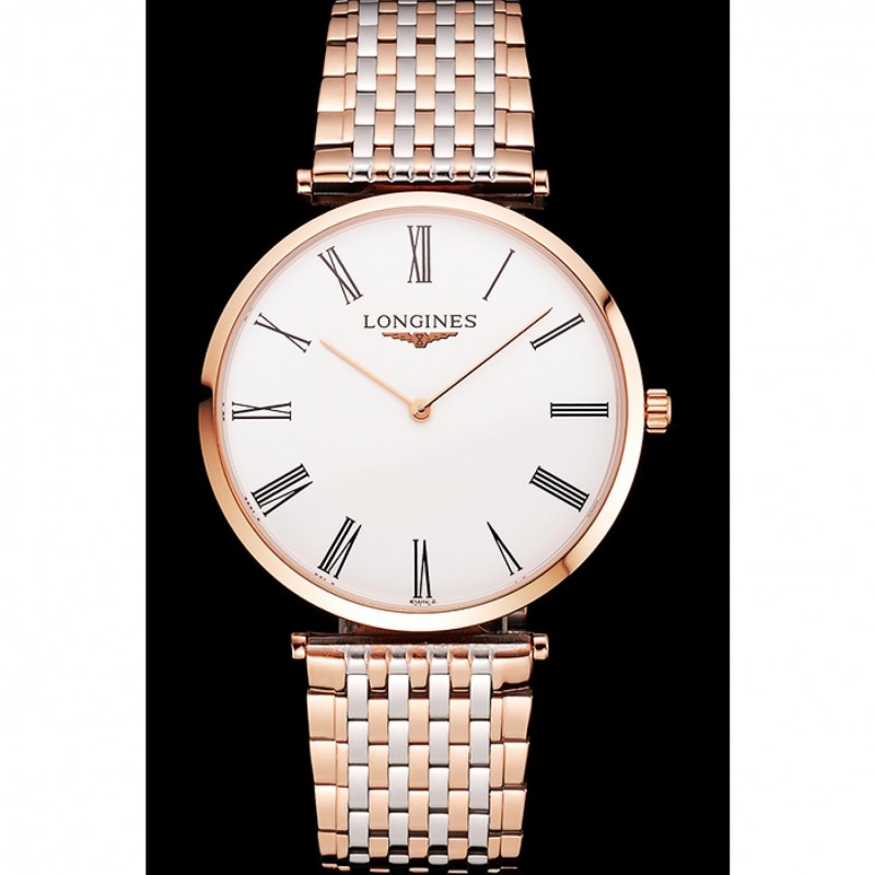 Svizzero Longines Grande Classique quadrante bianco numeri romani cassa in oro rosa Bracciale Two Tone