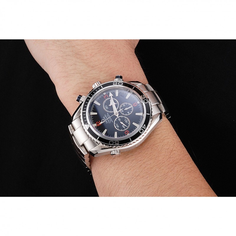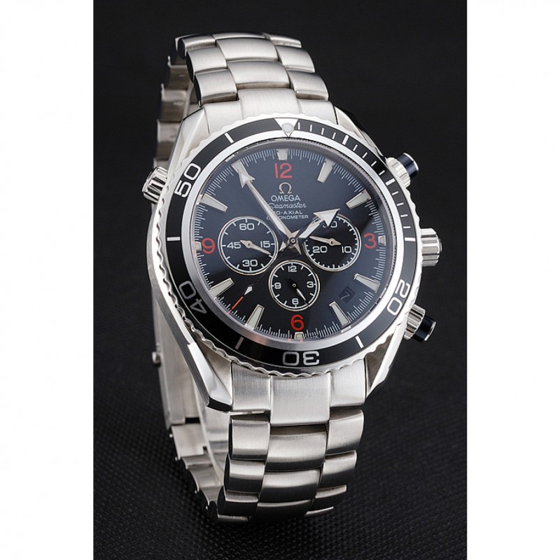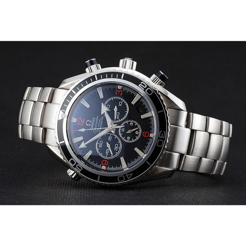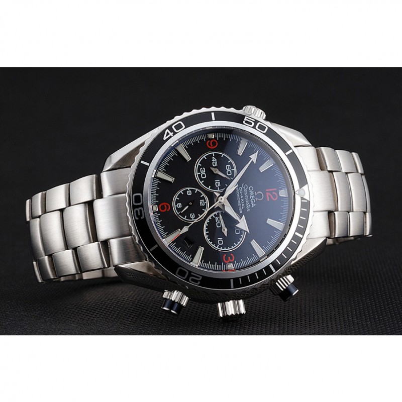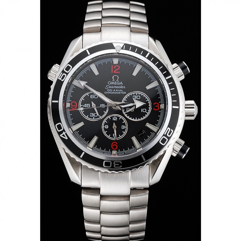 Svizzero Omega Seamaster Cronografo Quadrante Nero Cassa in acciaio nero lunetta in acciaio e bracciale