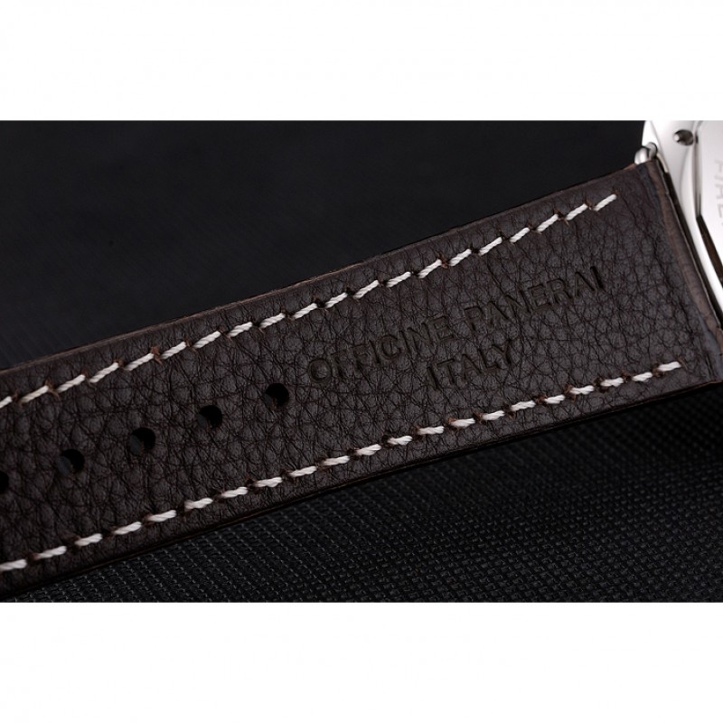 Bracciale: Officine Panerai Italia calore rilievo cinturino in cuoio testa di moro con filo bianco cuciture e Panerai inciso in acciaio inox catenaccio del gancio-fibbia lucida