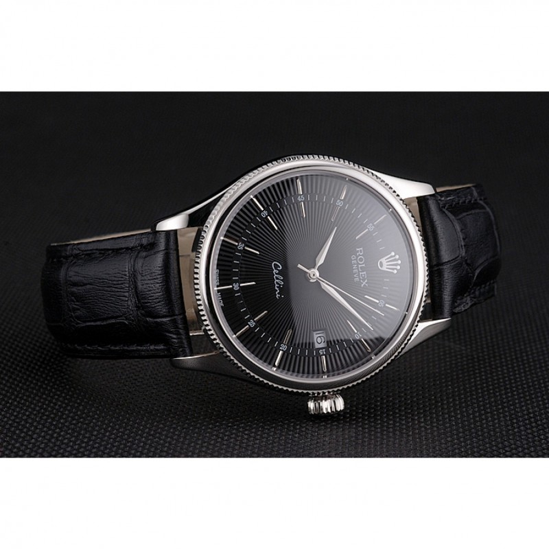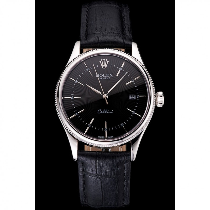 Svizzero Rolex Cellini Data Quadrante Nero Cassa in acciaio nero cinturino in pelle