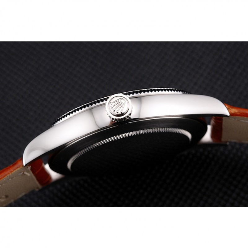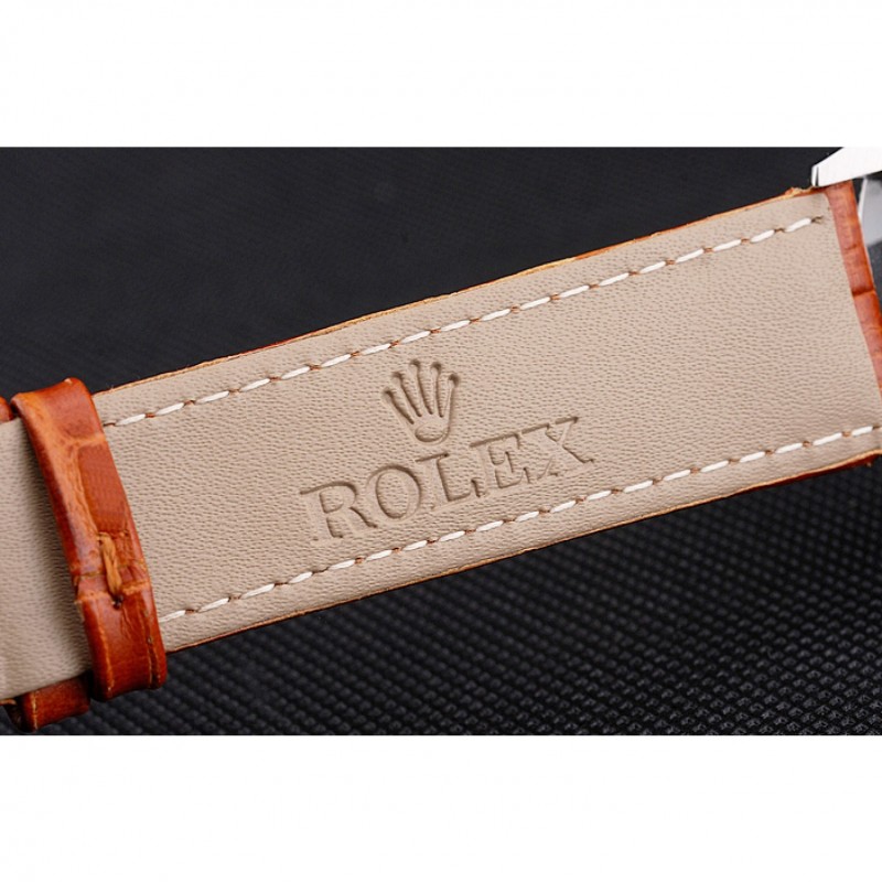 Bracciale: cinturino Rolex e il logo di calore in rilievo marrone chiaro pelle di coccodrillo con Rolex logo intagliato in acciaio inossidabile chiusura a gancio fibbia lucida