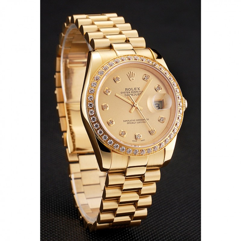 Svizzero Rolex Datejust Champagne Diamond Dial lunetta in oro Bracciale 1454097