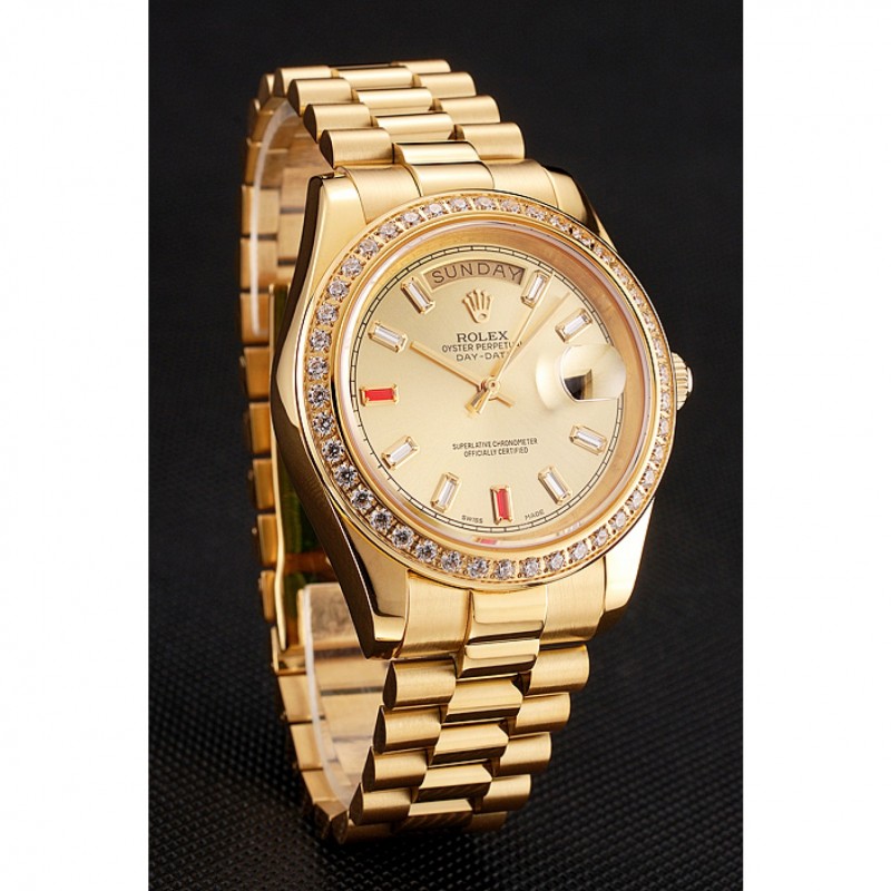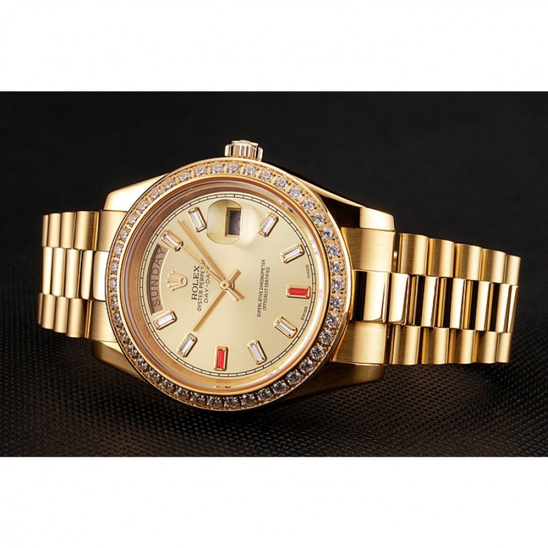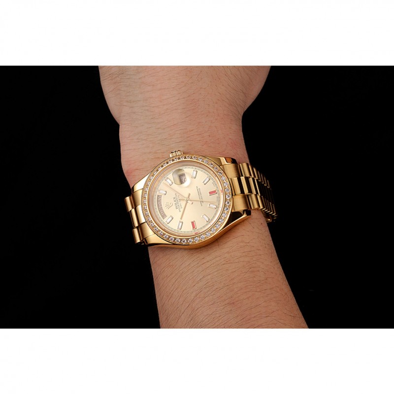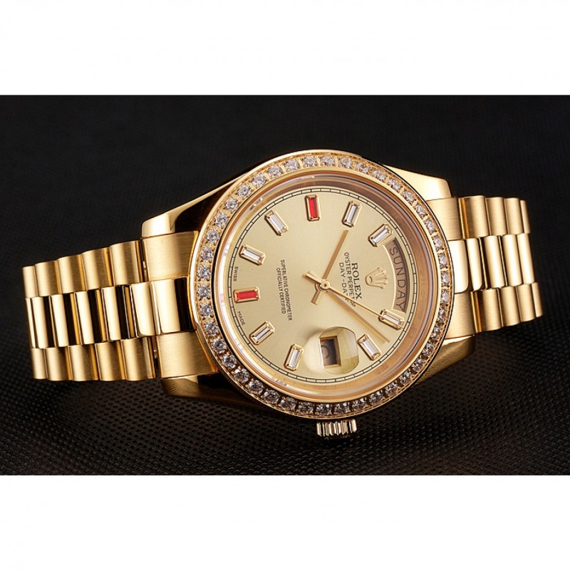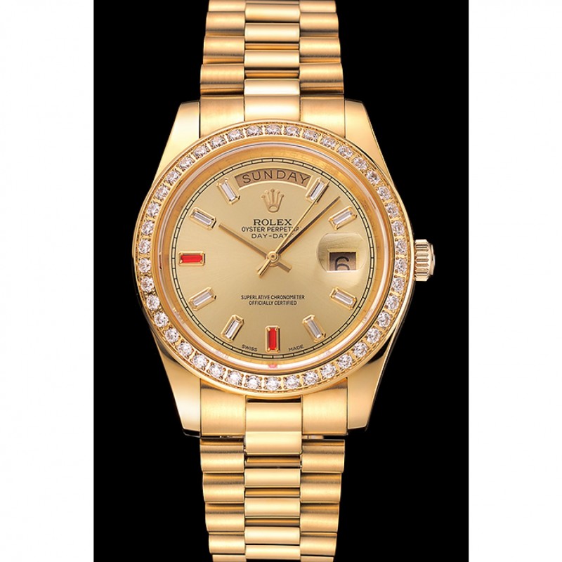 Svizzero Rolex Day-Date diamanti e rubini Champagne quadrante in oro Bracciale 1454100