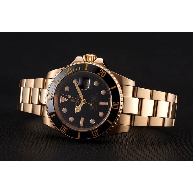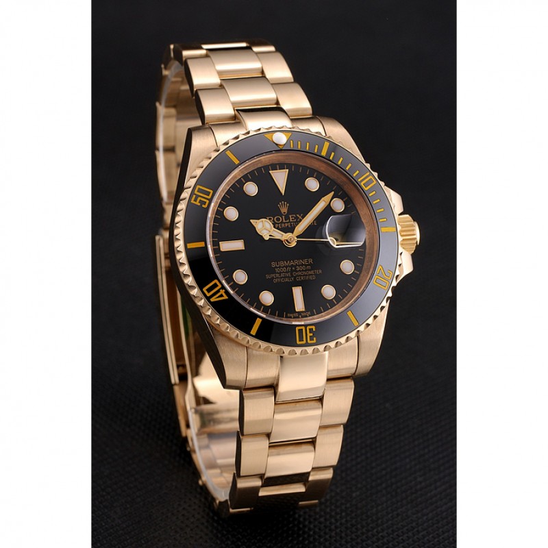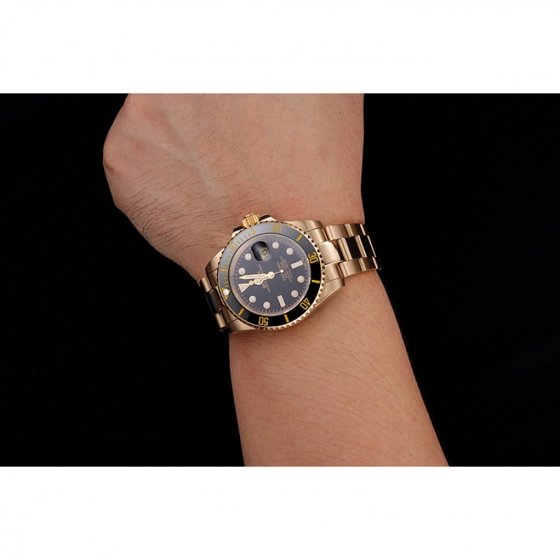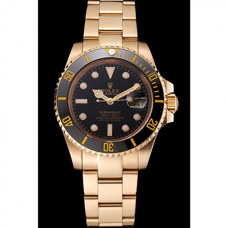 Svizzero Rolex Submariner quadrante nero nero Lunetta Giallo cassa e bracciale in oro