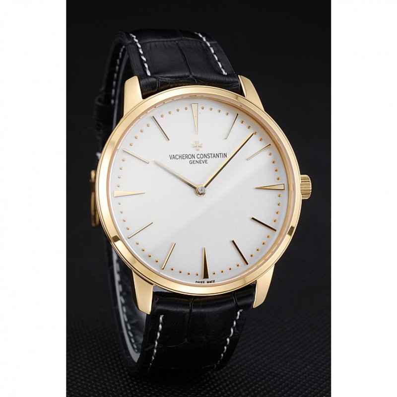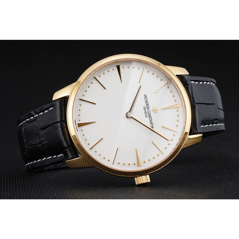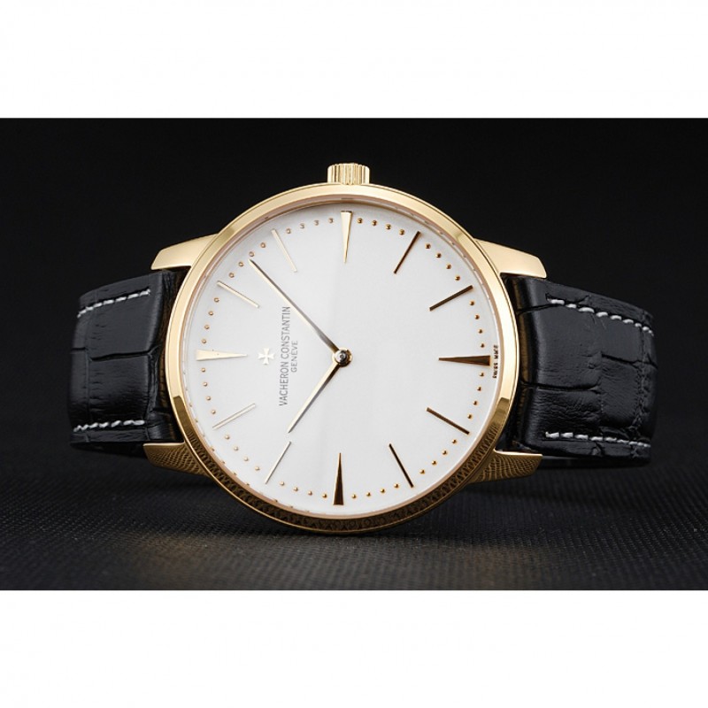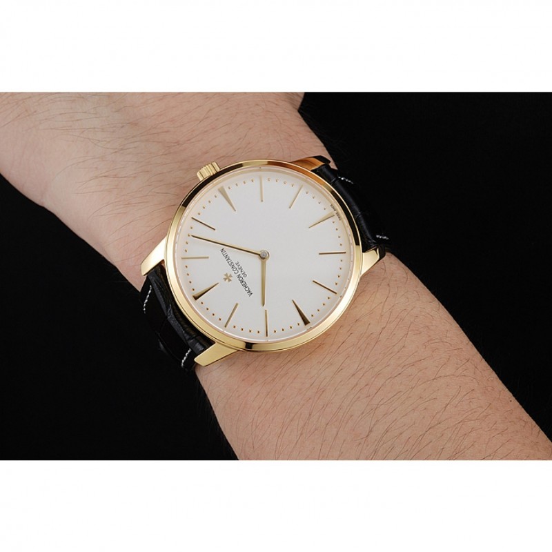 braccialetto:placcatoVacheron Constantin e logo calore impresso cinturino in coccodrillo nero con cucitura in bianco filo e Vacheron Constantin logo intagliato oro giallo 18k gancio chiusura -buckle