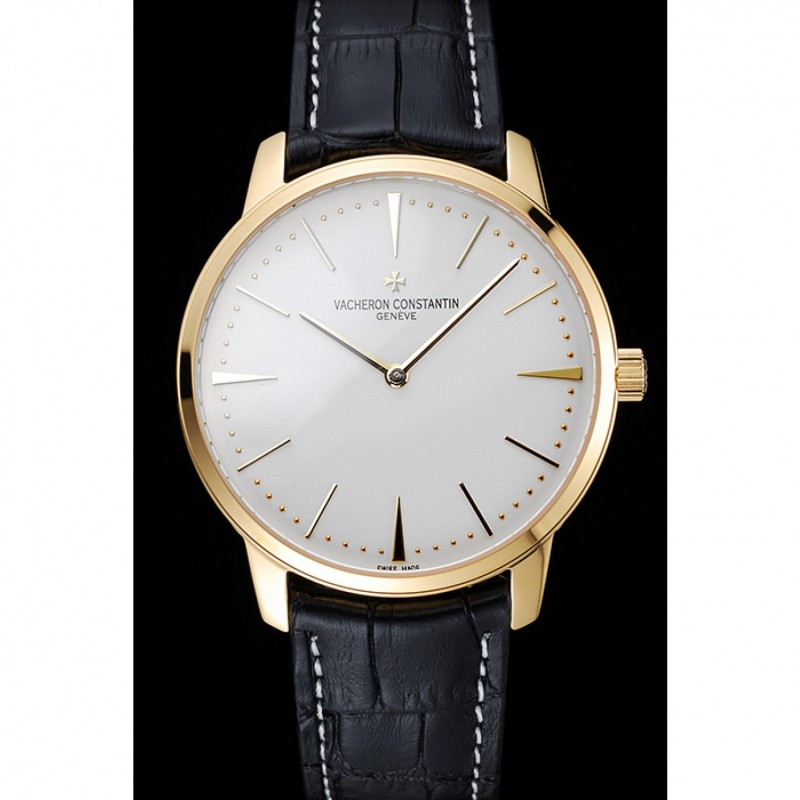 Svizzero Vacheron Constantin Patrimony Gran Taille quadrante bianco in pelle oro bracciale nero della cassa 1454176