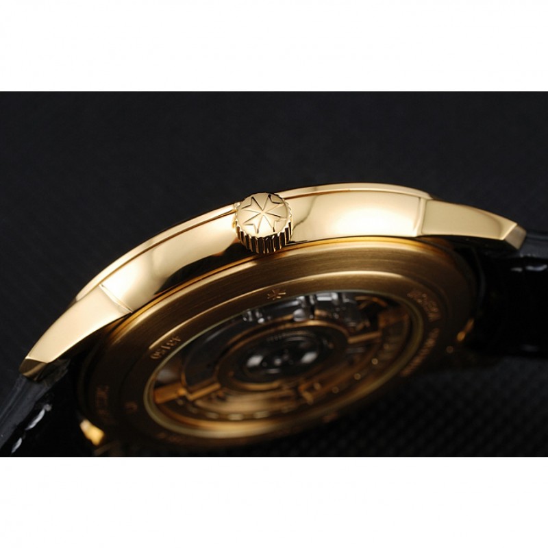 Torna: oro giallo 18k placcato snap-in di nuovo con incisioni Vacheron Constantin e la meccanica-rivelando trasparente centro