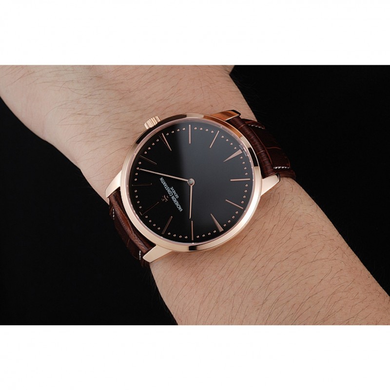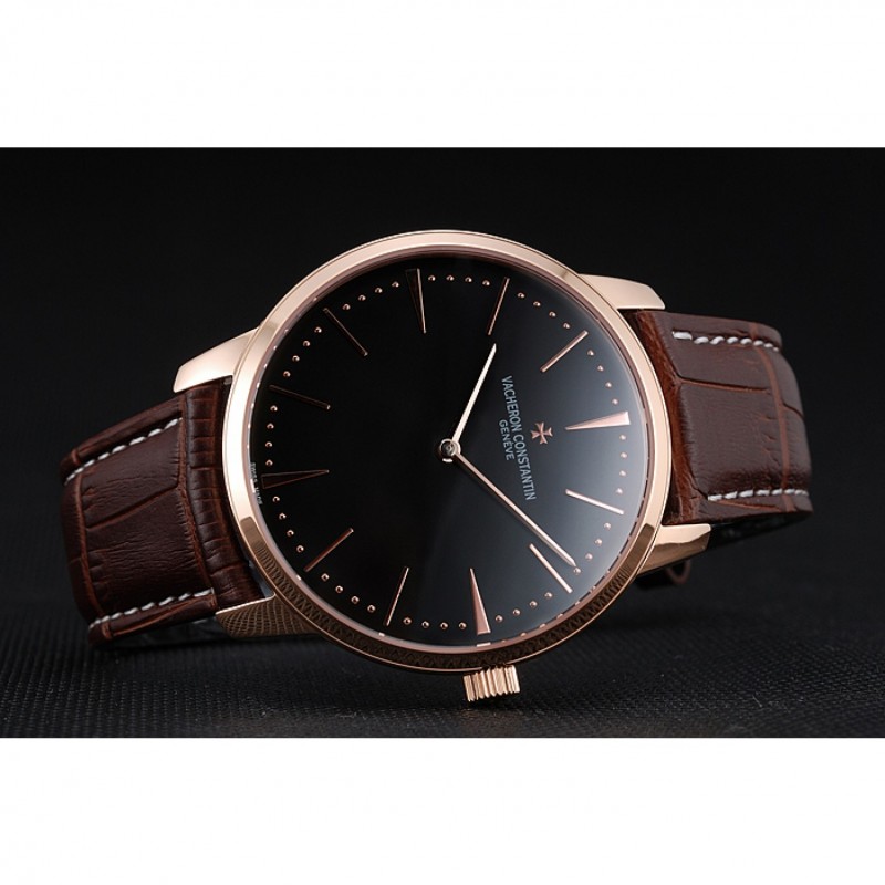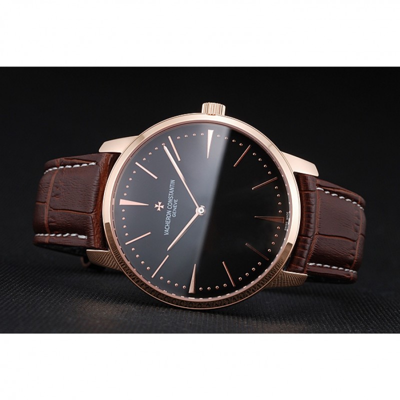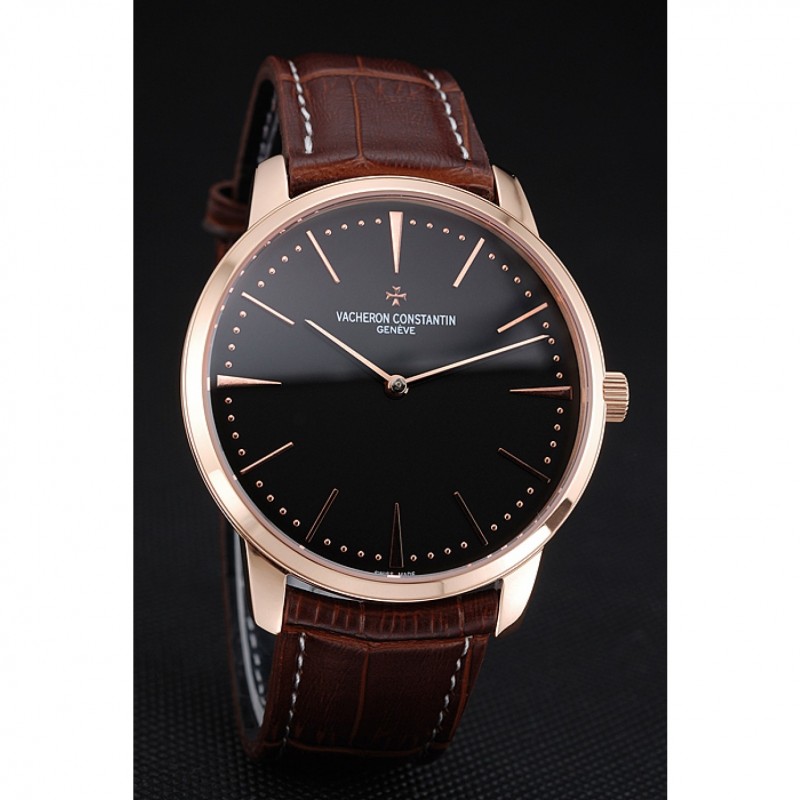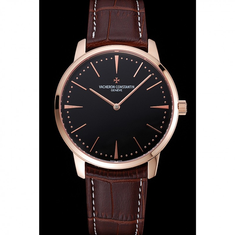 Recensisci per primo “Svizzero Vacheron Constantin Patrimony Gran Taille quadrante nero Bracciale in pelle cassa in oro rosa Brown 1454169”