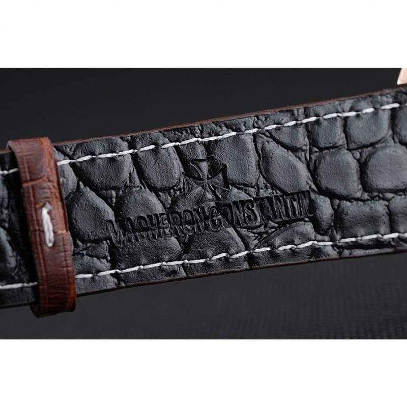 braccialetto: Vacheron Constantin e logo calore impresso cinturino in pelle di coccodrillo marrone con cuciture bianche filo e Vacheron Constantin logo intagliato 18k oro rosa placcato hook-fibbia chiusura
