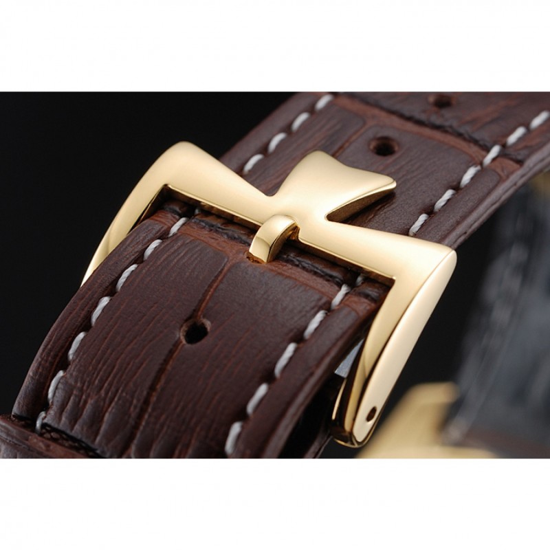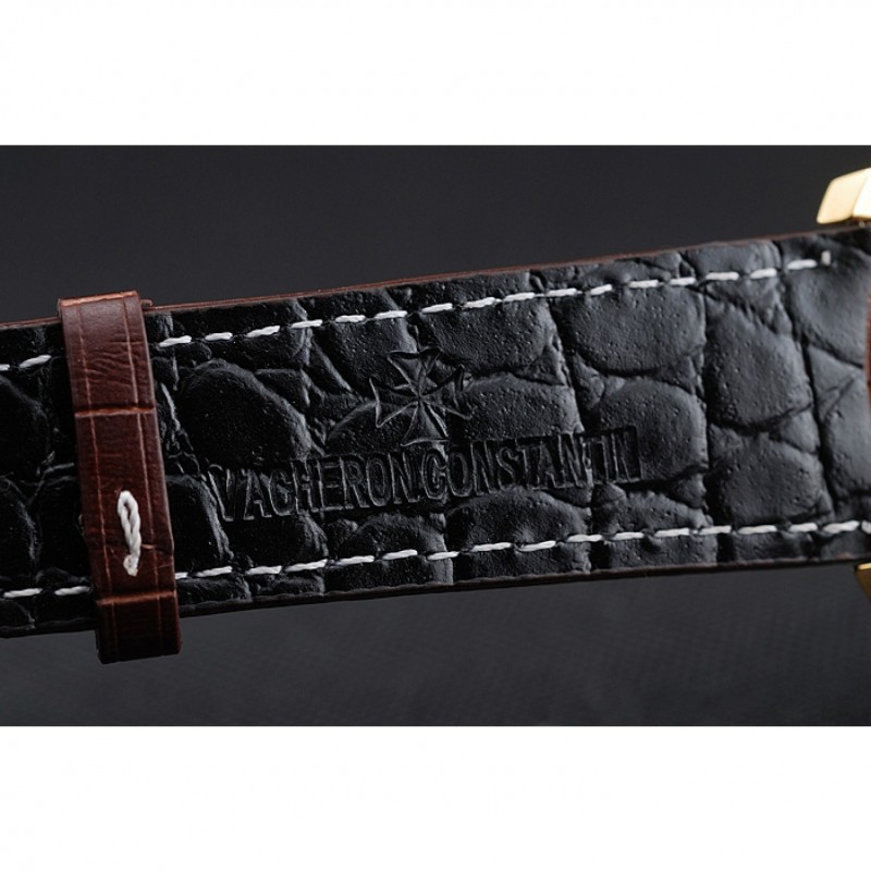 Bracciale: Vacheron Constantin e il logo di calore in rilievo cinturino in pelle di coccodrillo marrone con cuciture bianche filo e Vacheron Constantin logo intagliato oro giallo 18k chiusura plated hook-fibbia