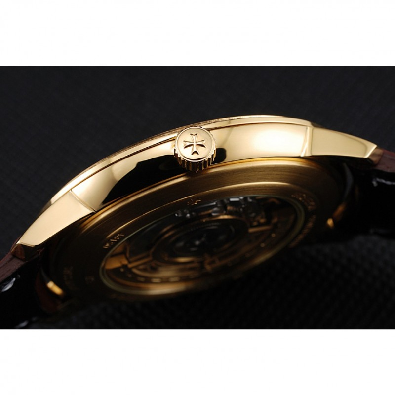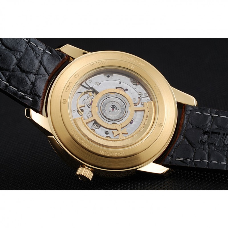 Torna: oro giallo 18k placcato snap-in di nuovo con incisioni Vacheron Constantin e la meccanica-rivelando trasparente centro