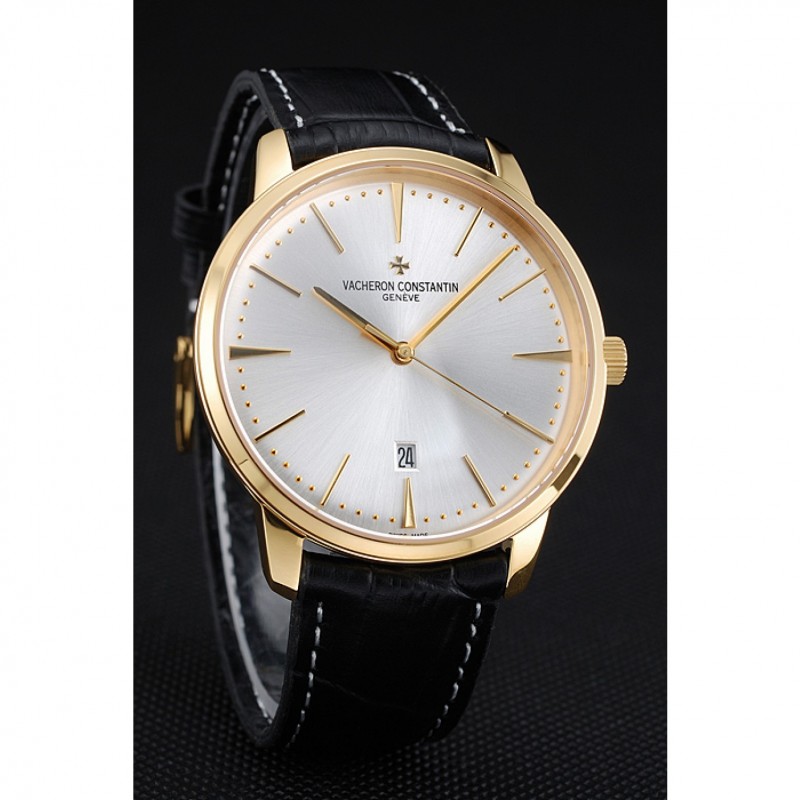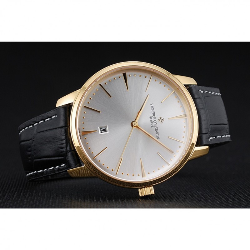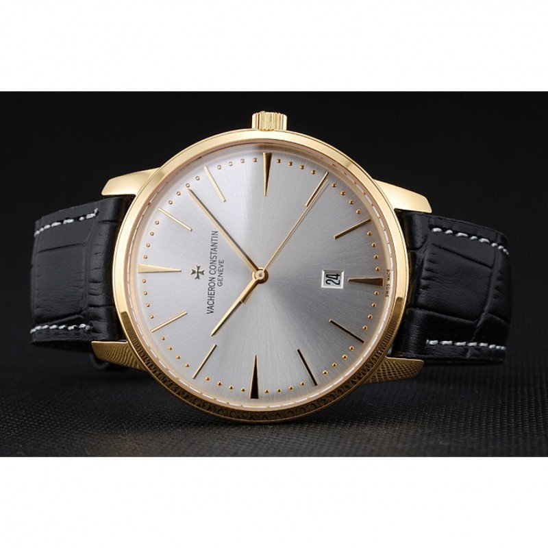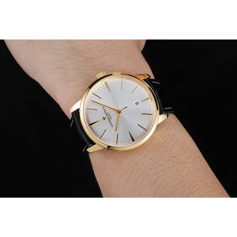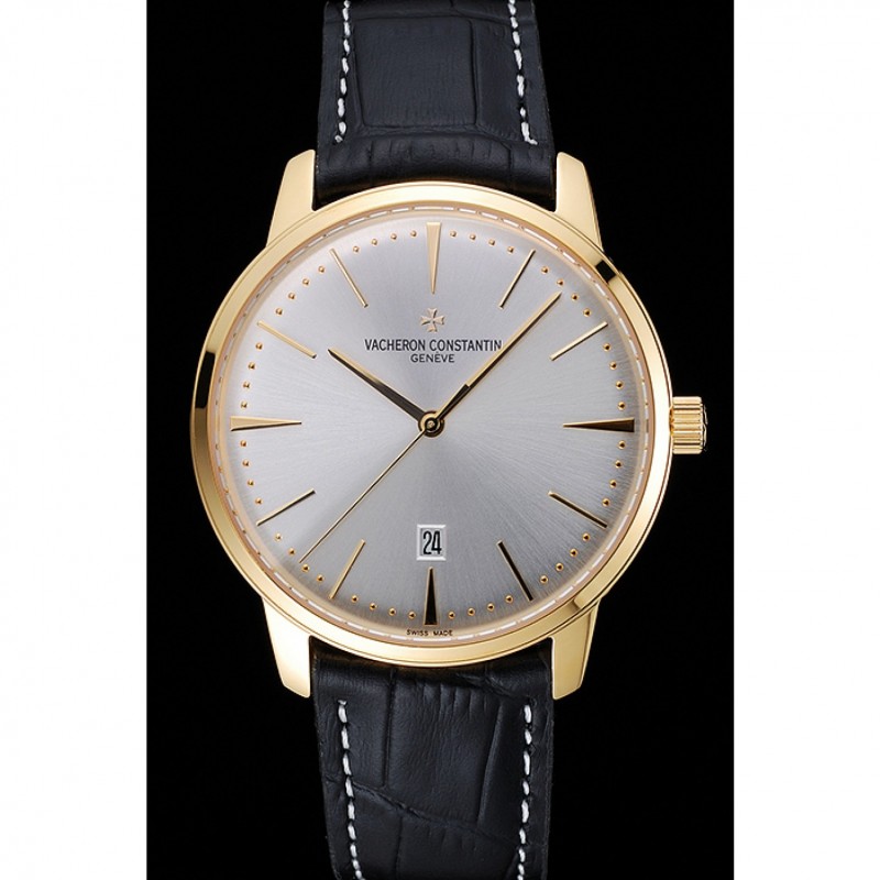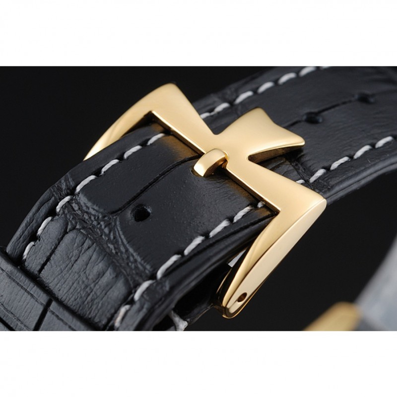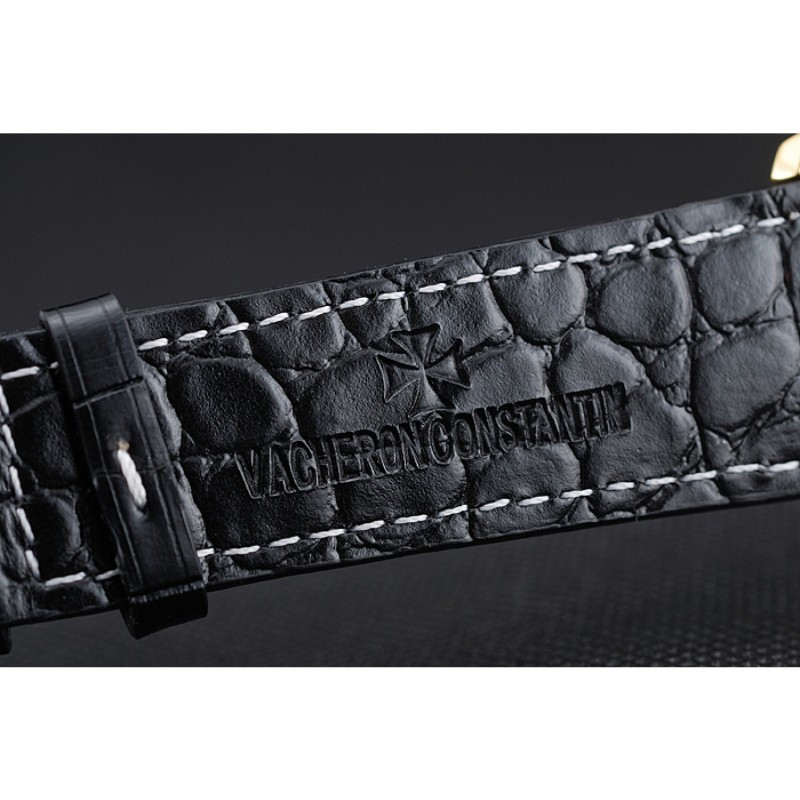 braccialetto:placcatoVacheron Constantin e logo calore impresso cinturino in coccodrillo nero con cucitura in bianco filo e Vacheron Constantin logo intagliato oro giallo 18k gancio chiusura -buckle