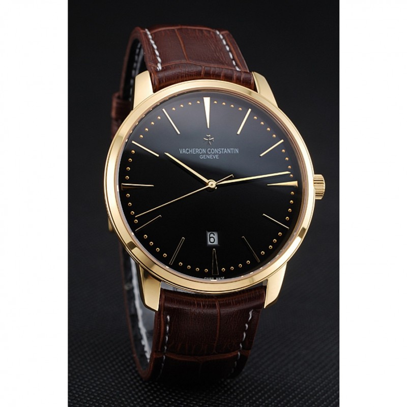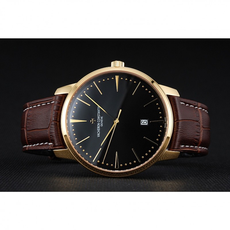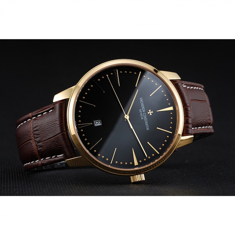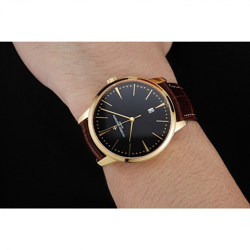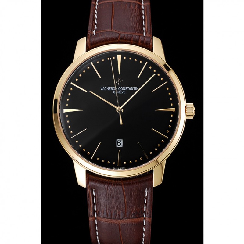 Svizzero Vacheron Constantin Patrimony quadrante nero in pelle oro bracciale Caso Brown 1454179