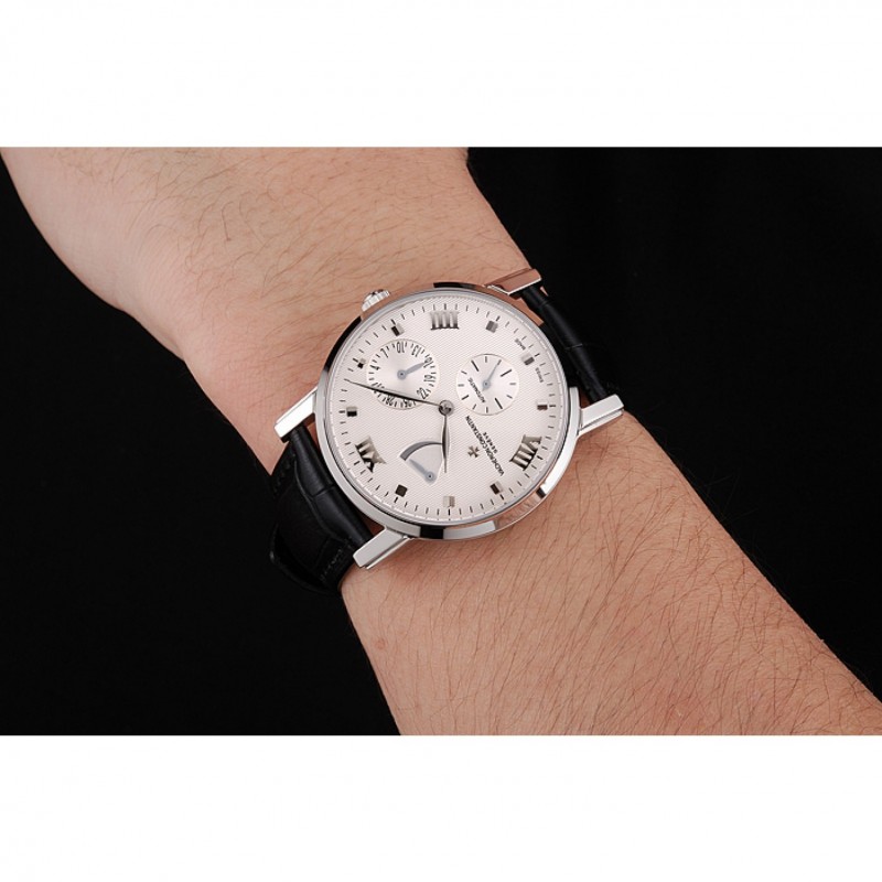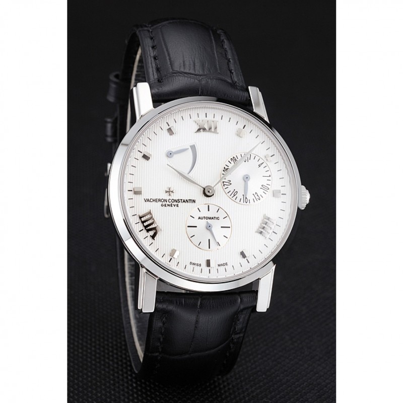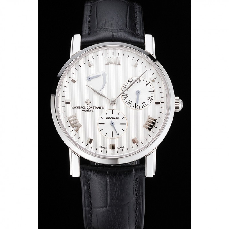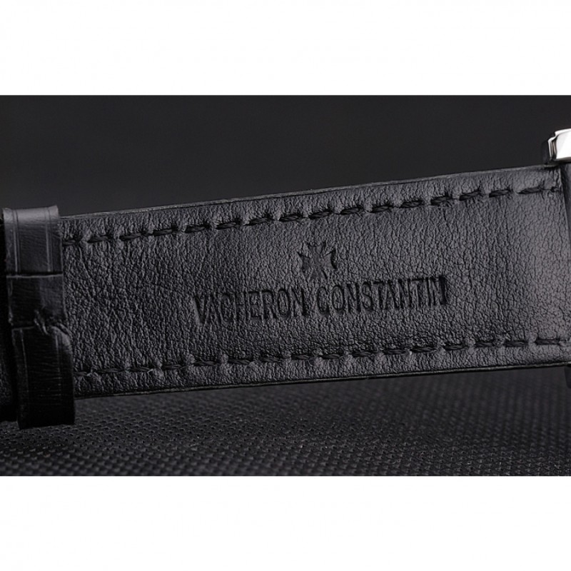 Bracciale: logo e calore in rilievo cinturino in pelle di coccodrillo nero Vacheron Constantin con lucido logo in acciaio inox intagliato gancio-fibbia chiusura