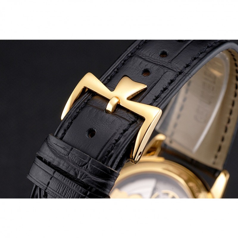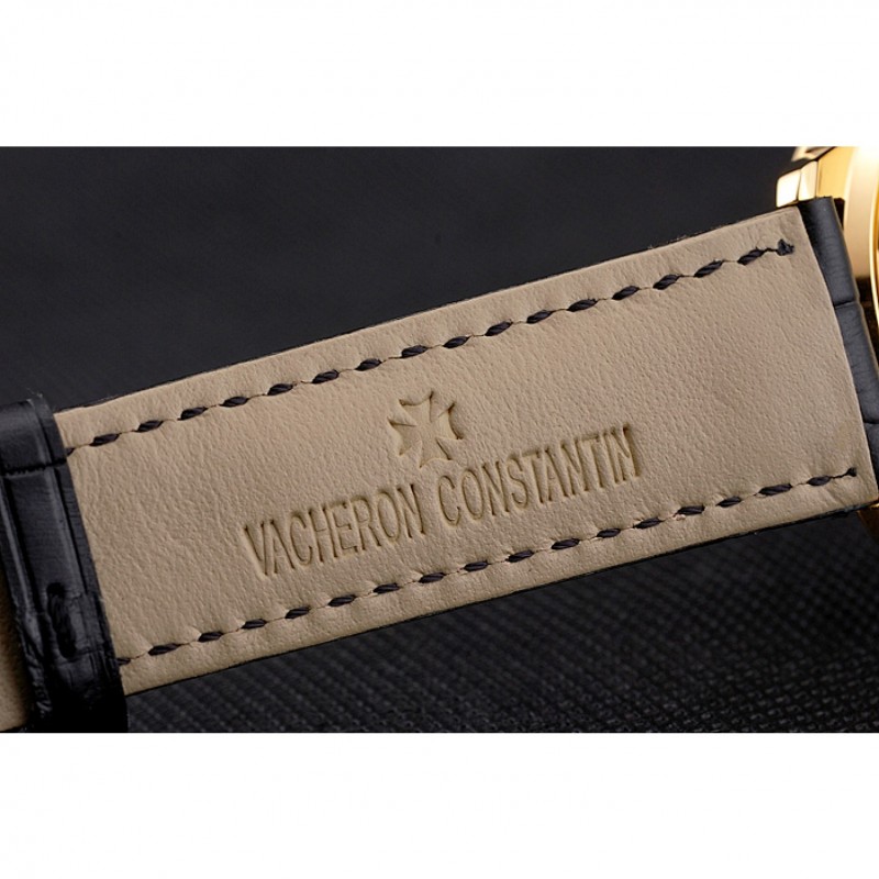 Bracciale: logo e calore in rilievo cinturino in pelle di coccodrillo nero Vacheron Constantin con logo intagliato placcato oro giallo 18k chiusura del gancio-fibbia