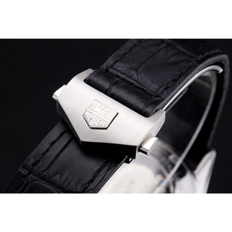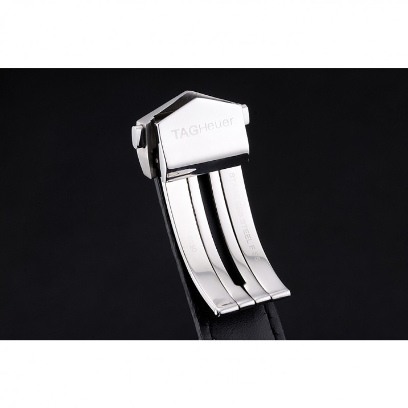 Bracciale: Tag Heuer calore impresso cinturino in pelle di coccodrillo nera con Tag Heuer incisi in acciaio inox spazzolato chiusura a scatto push-rilascio