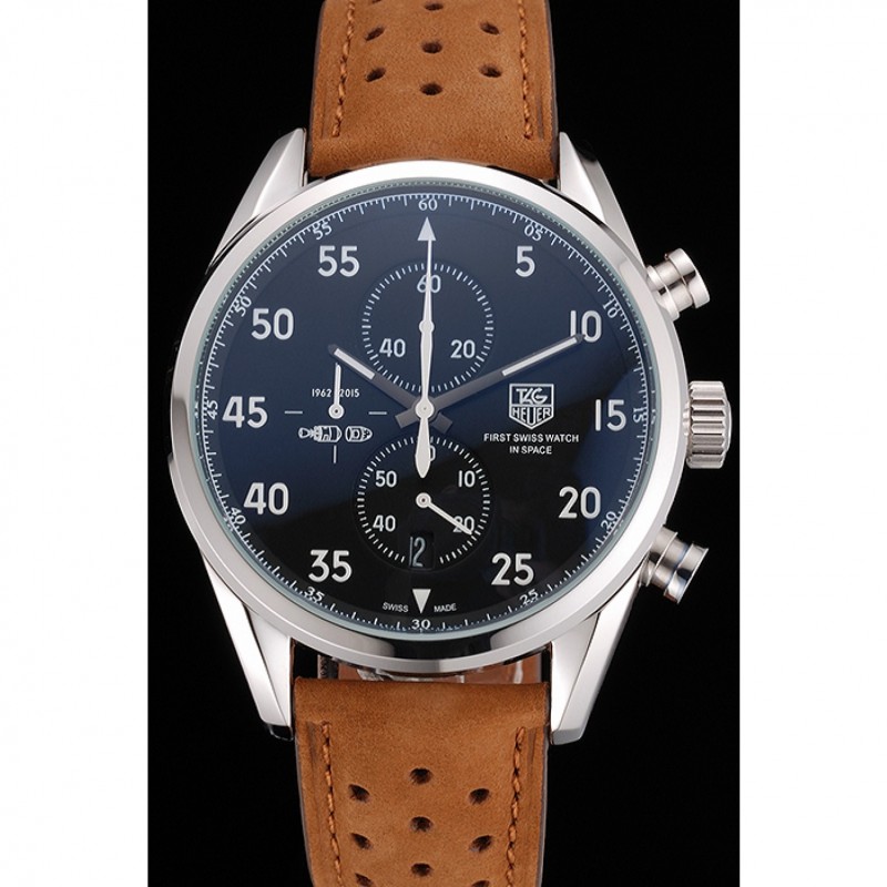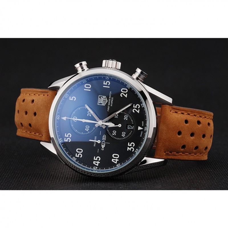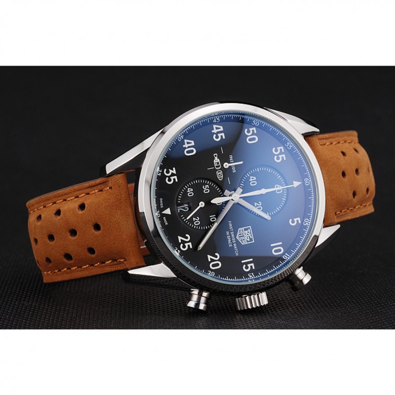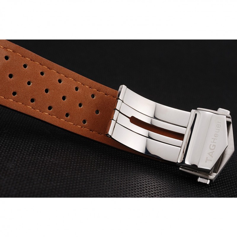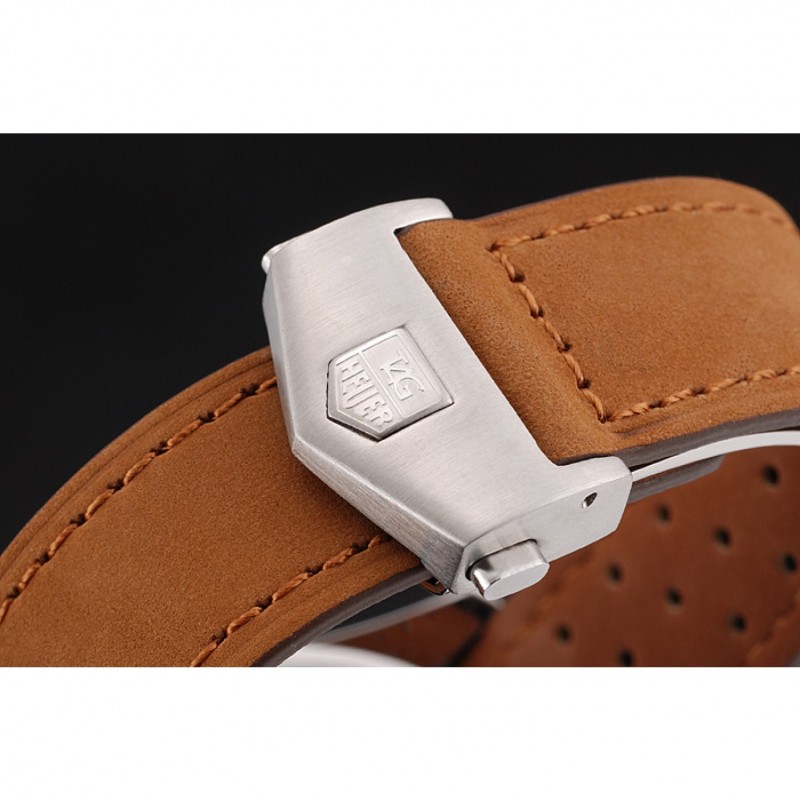 Bracciale: cinturino in pelle nabuk marrone perforato con Tag Heuer logo inciso in acciaio inox lucido fold-in chiusura di rilascio di spinta
