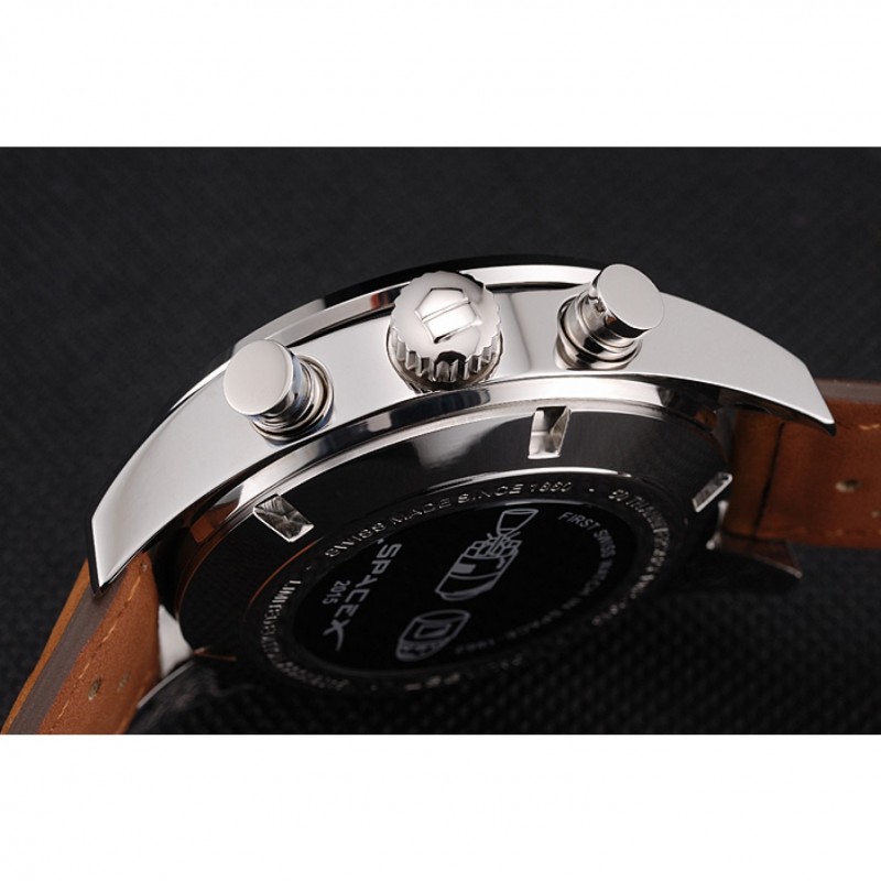 corona: Tag Heuer logo inciso lucido corona intaglio in acciaio inox con una corona a pulsante su entrambi i lati di esso