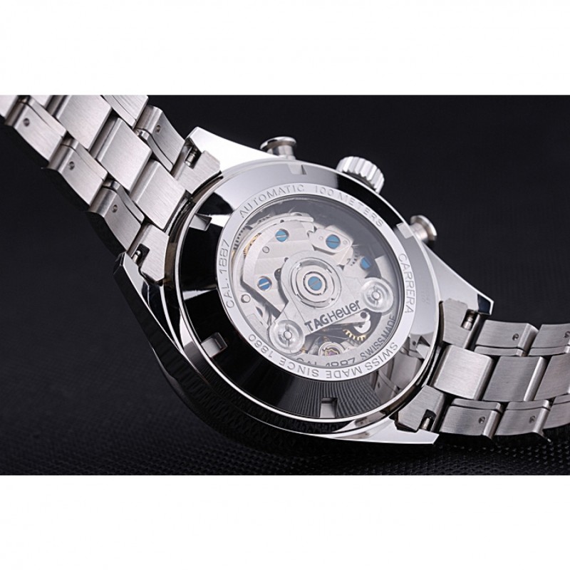 Torna: lucidato a scatto in acciaio inox retro con meccanica rivelano centro trasparente e Tag incisioni Heuer Carrera