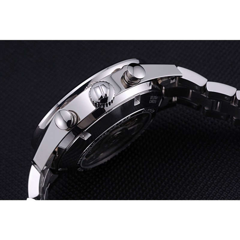 corona: lucido corona intaglio in acciaio inox con logo TAG Heuer e due più piccole corone a pulsante su entrambi i lati di esso