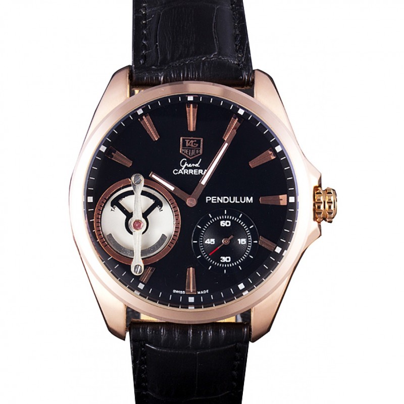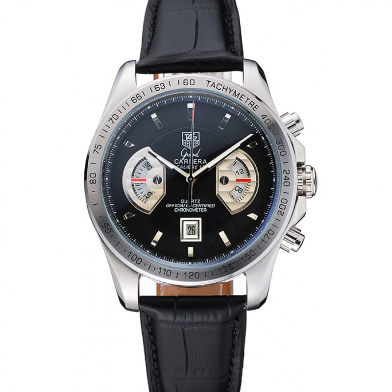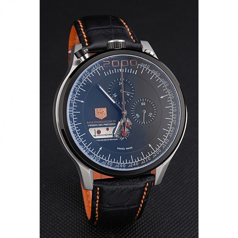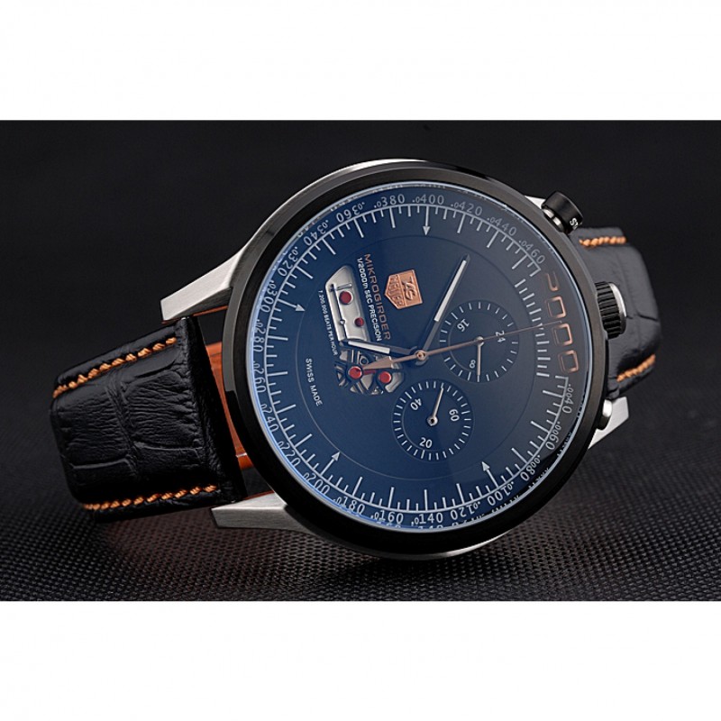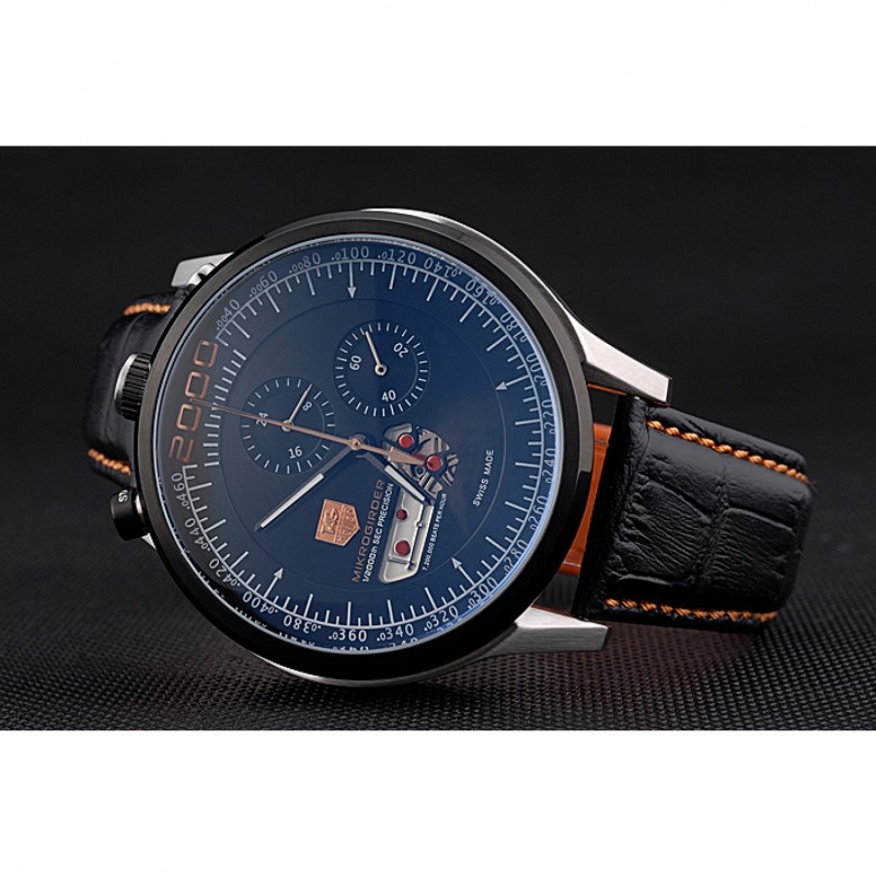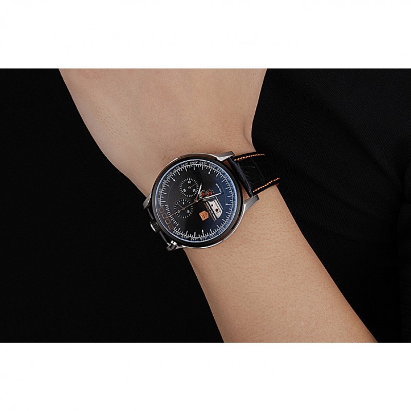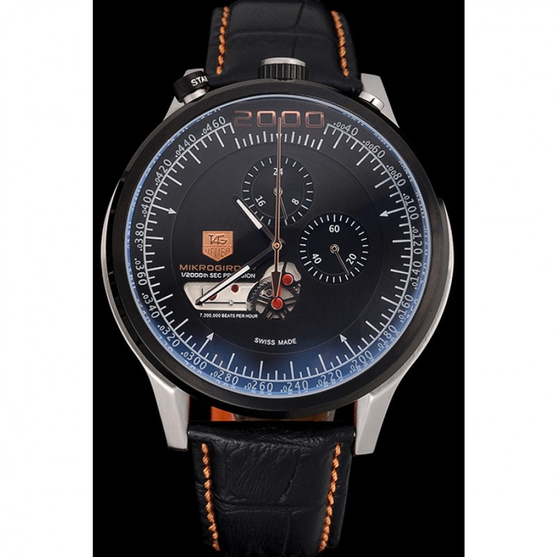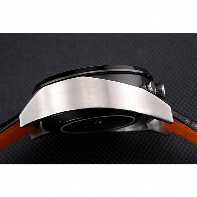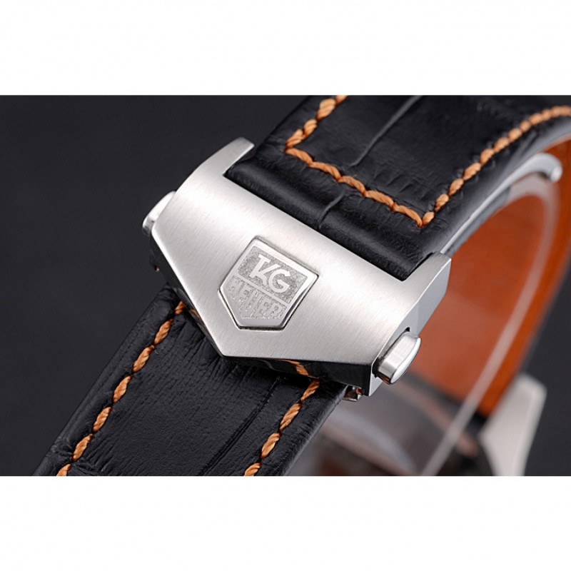 Bracciale:cinturino in pelle di vitello nera Tag Heuer calore goffrato con filo arancione cuciture e Tag Heuer incisi spazzolato ad armadio in chiusura