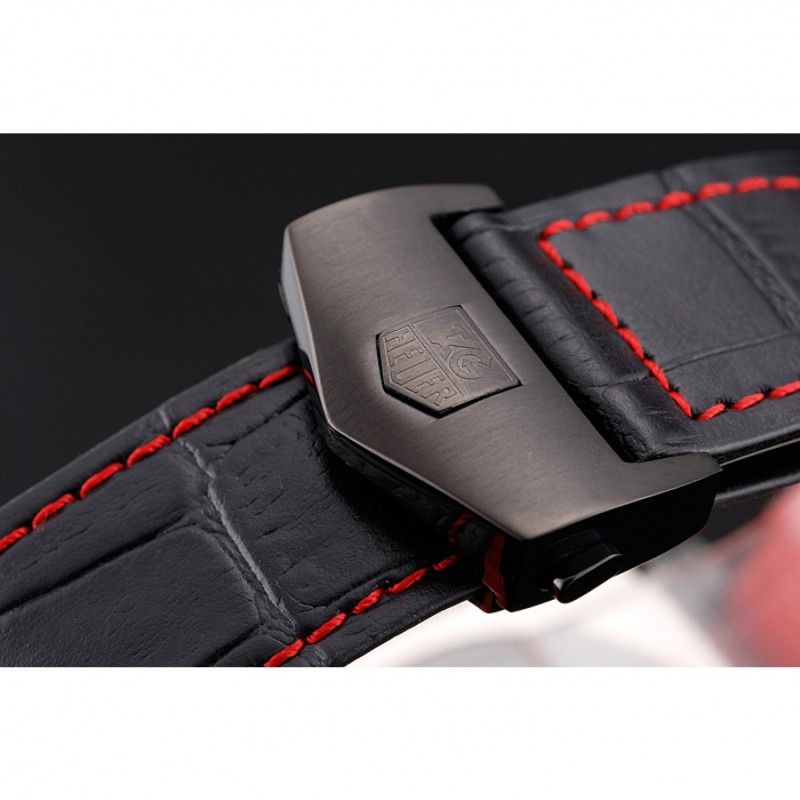 braccialetto: fodera cinturino in pelle traforata rossa nera con Tag Heuer logo inciso ionico-plated push-rilascio fold-in chiusura