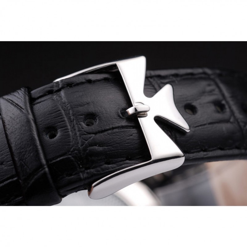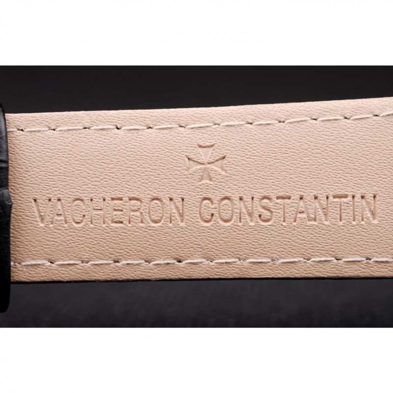 Bracciale: Black coccodrillo cinturino in pelle con il calore in rilievo Vacheron Constantin timbro e acciaio inox lucido Vacheron Constantin chiusura logo gancio-fibbia