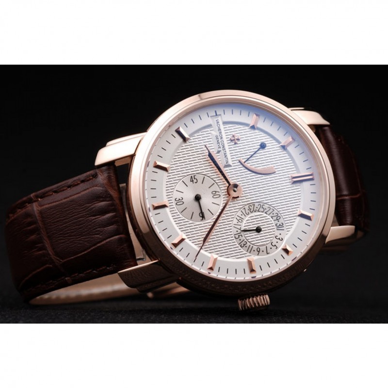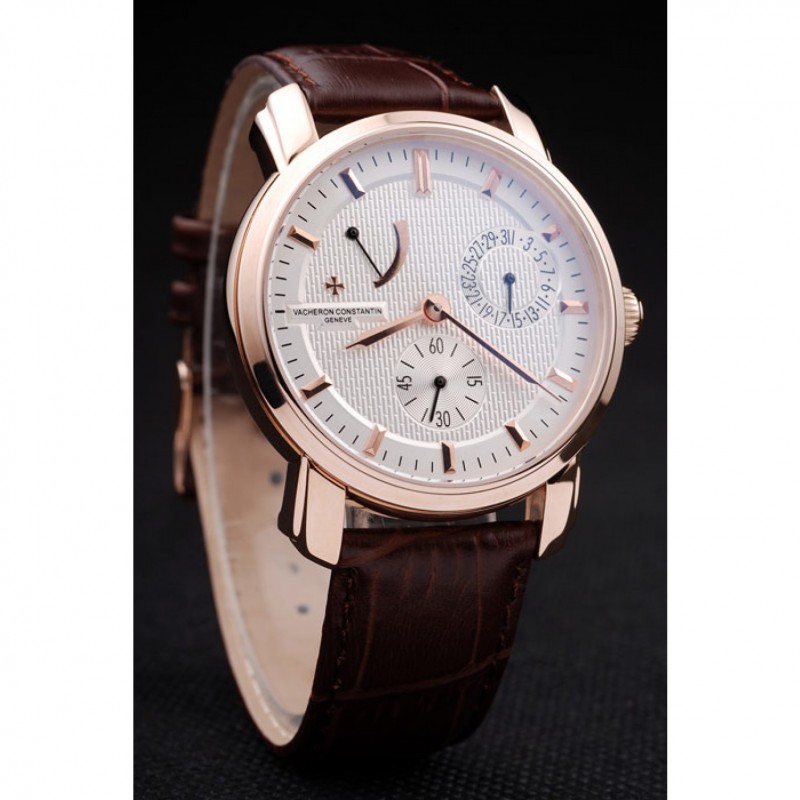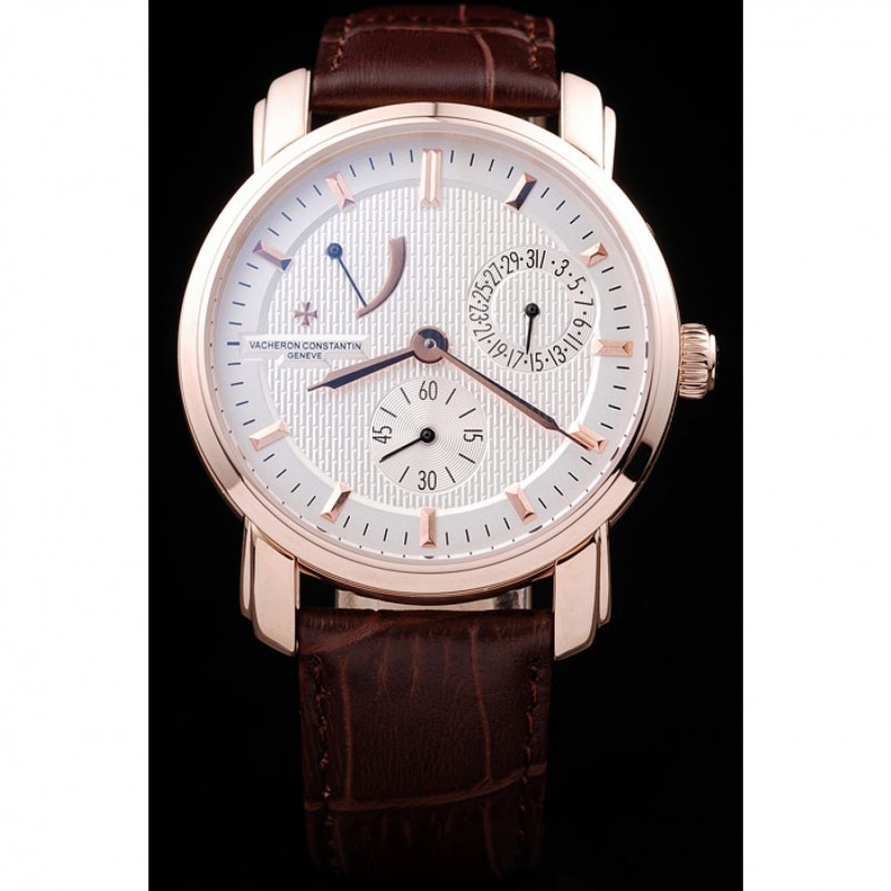 braccialetto: Brown cinturino in coccodrillo con calore impresso Vacheron Constantin timbro e oro rosa placcato Vacheron Constantin logo gancio fibbia chiusura
