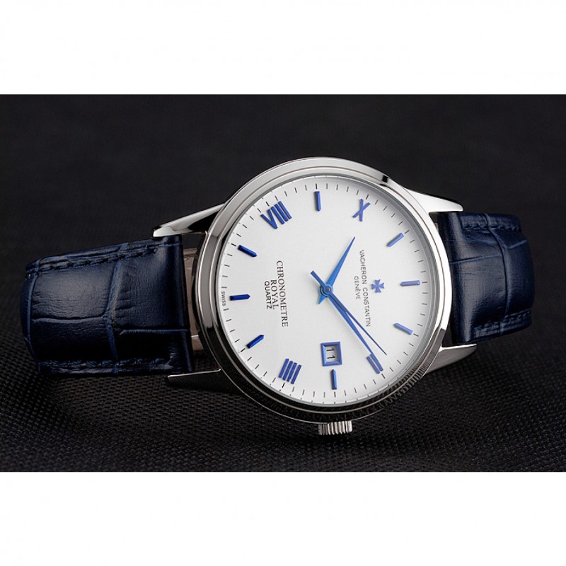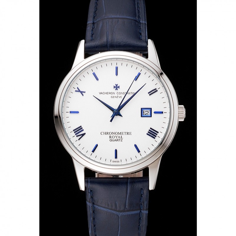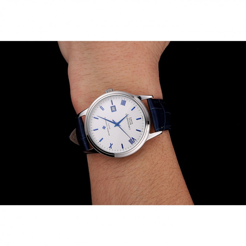 Vacheron Constantin Patrimony Chronometre Reale quadrante bianco Cassa in acciaio Cinturino in pelle blu