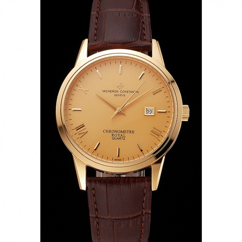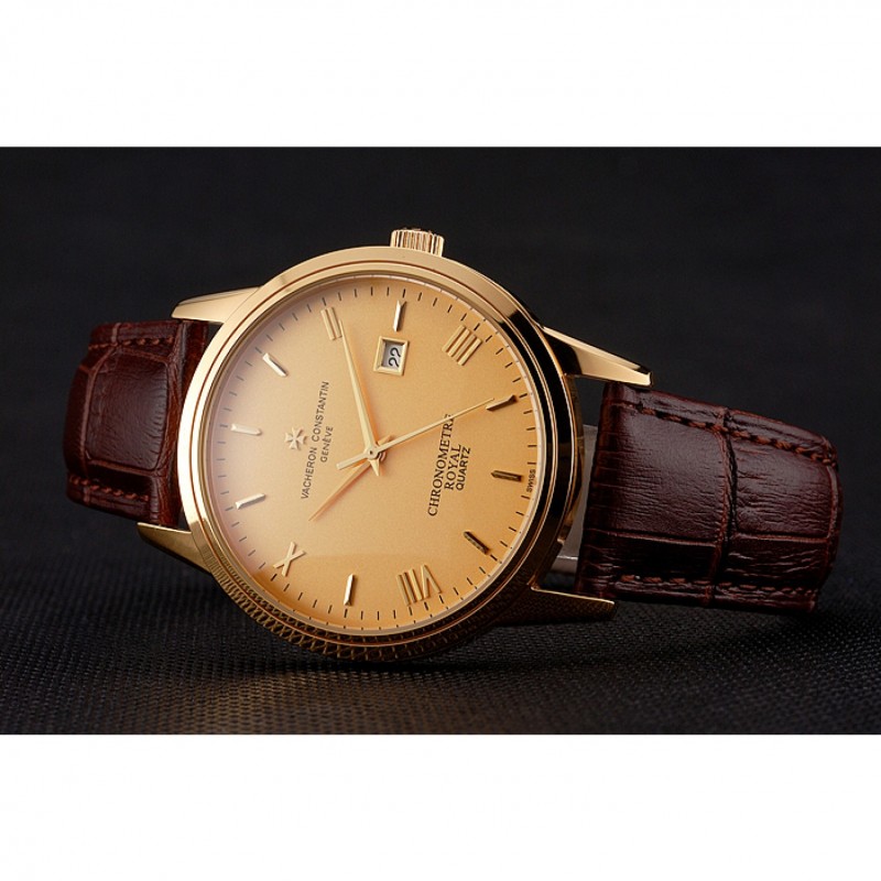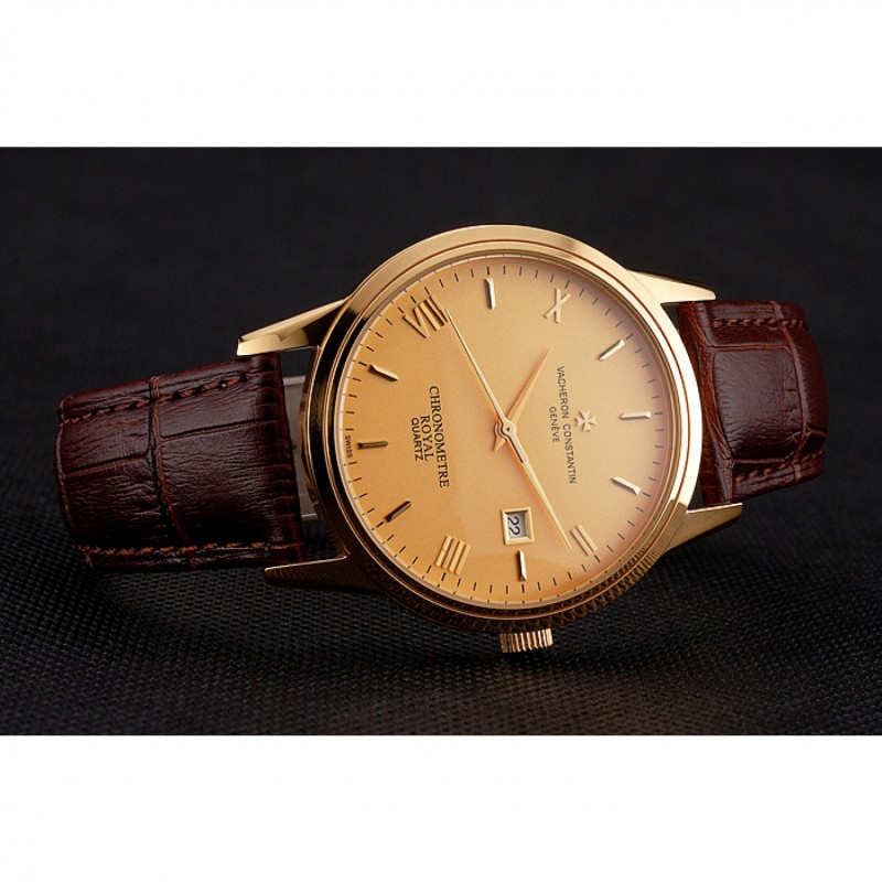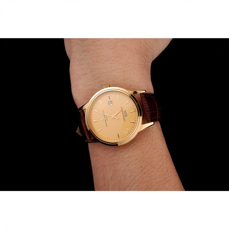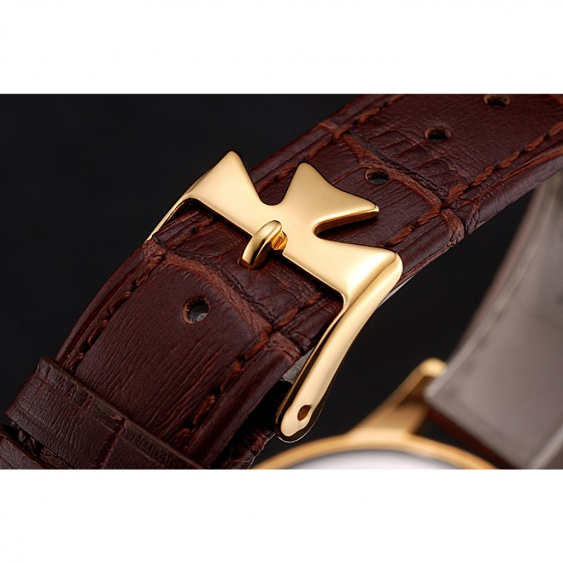 Bracciale: logo e calore in rilievo cinturino in pelle di coccodrillo marrone Vacheron Constantin con oro giallo 18k placcato logo intagliato catenaccio del gancio-fibbia