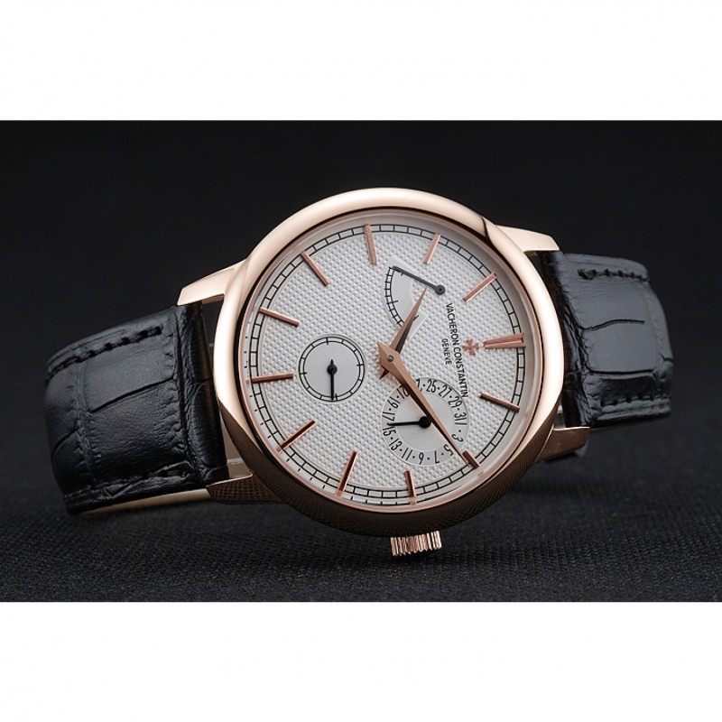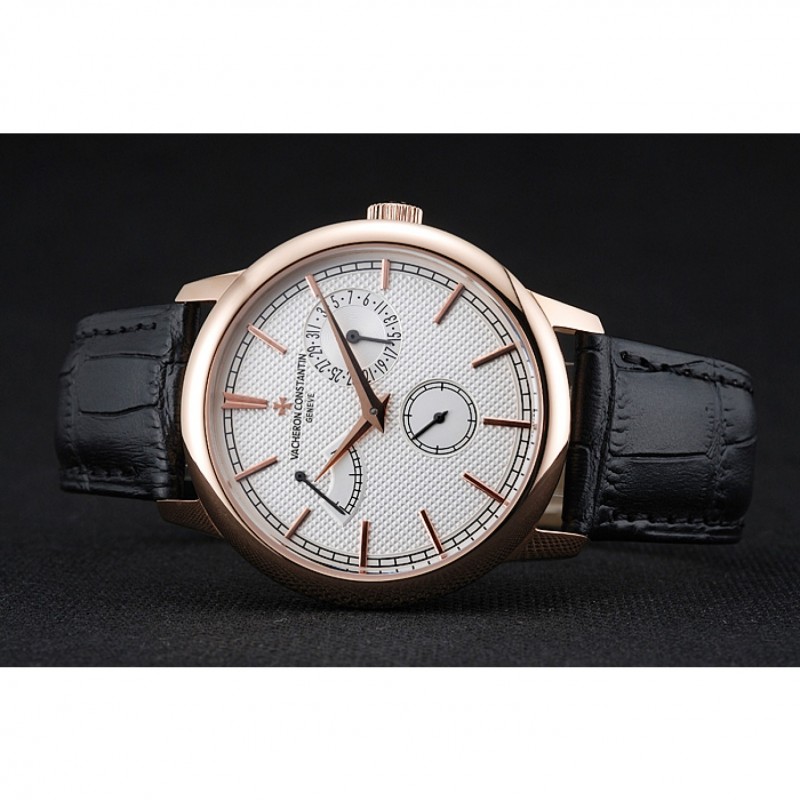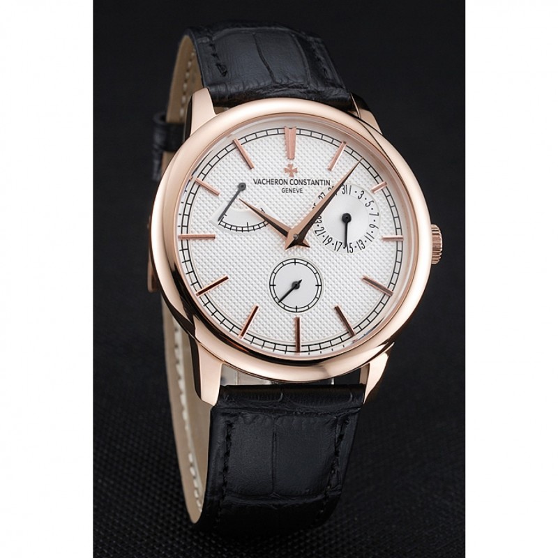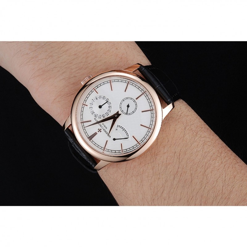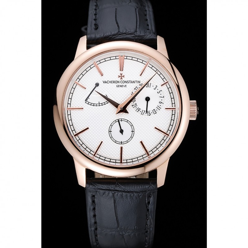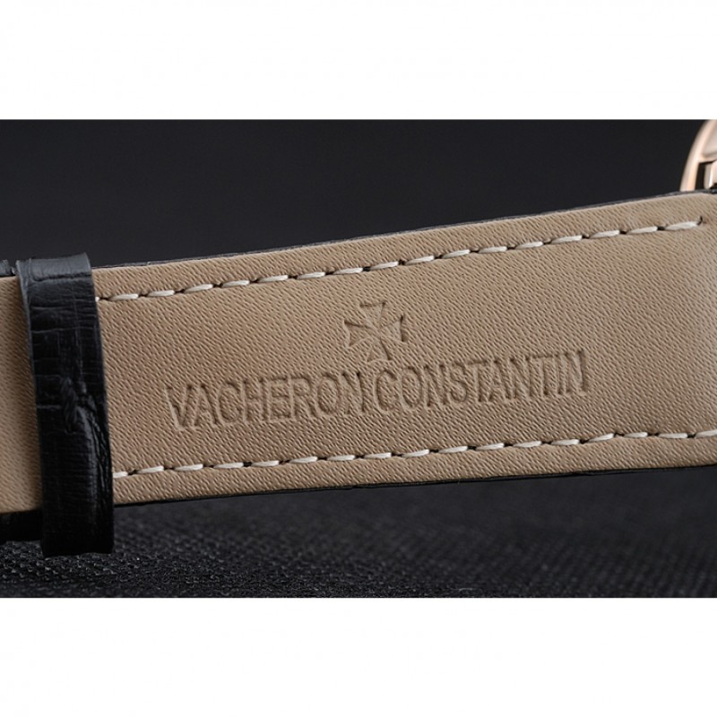 Bracciale: Vacheron Constantin calore impresso cinturino in pelle di coccodrillo nera con Vacheron Constantin logo 18k scolpito in oro rosa placcato hook-fibbia chiusura