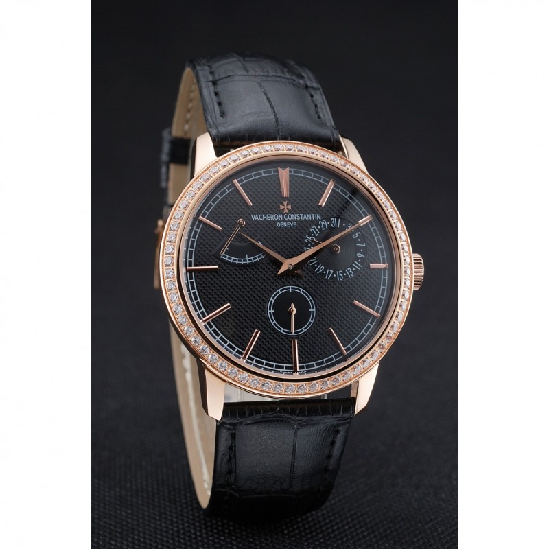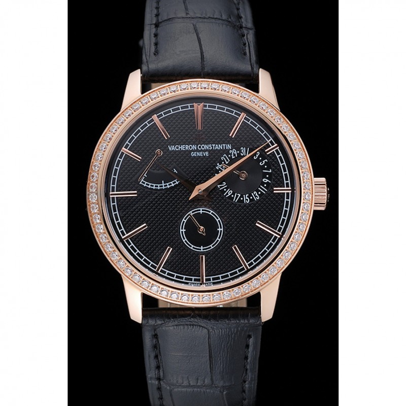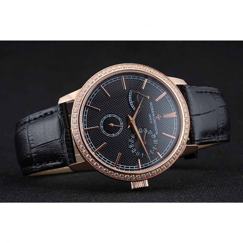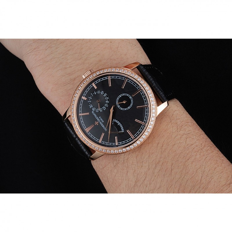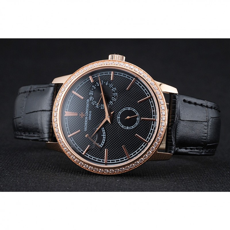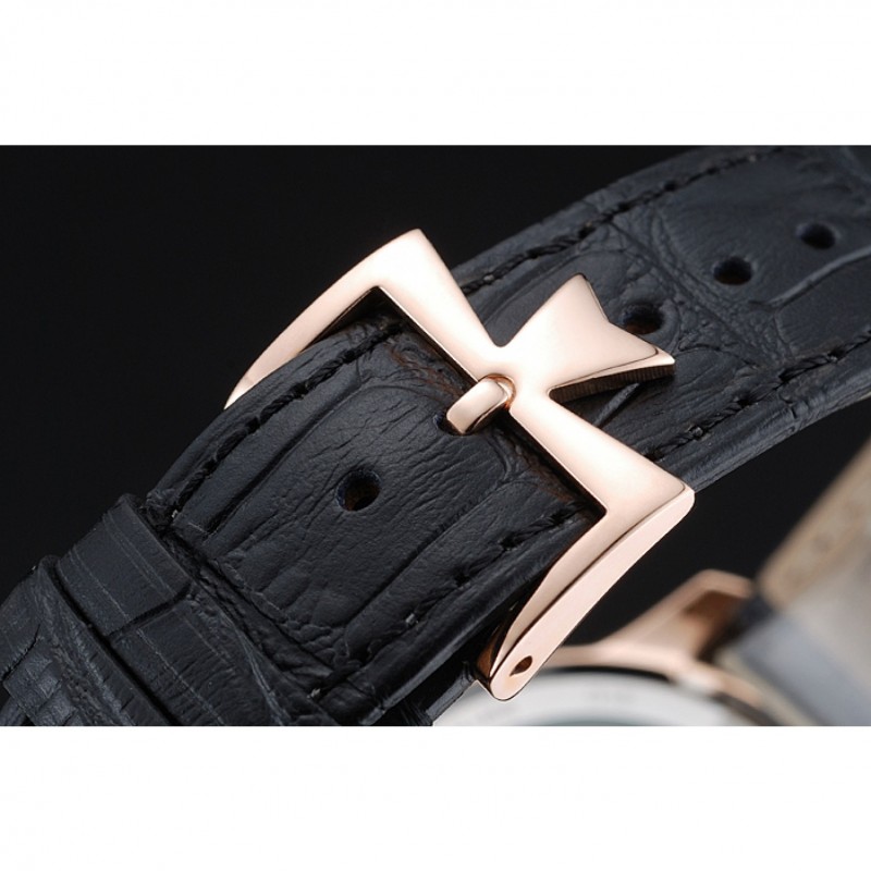 Bracciale: cinturino in pelle di coccodrillo nero calore Vacheron Constantin in rilievo con Vacheron Constantin logo 18k scolpito in oro rosa placcato catenaccio del gancio-fibbia